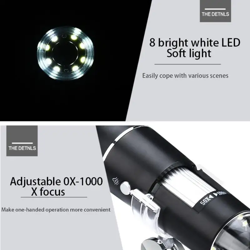 Цифровой микроскоп, 1000X увеличительное стекло с Wi-Fi, USB, 8 све...