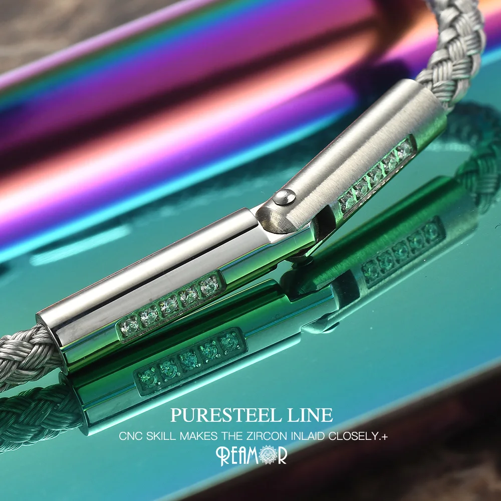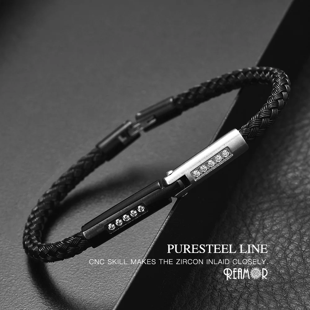 REAMOR, высокое качество, черный, серебристый, с ЧПУ, инкрустация цирконием, браслет, стальной провод, сплайсинга, механические браслеты, браслеты для мужчин и женщин