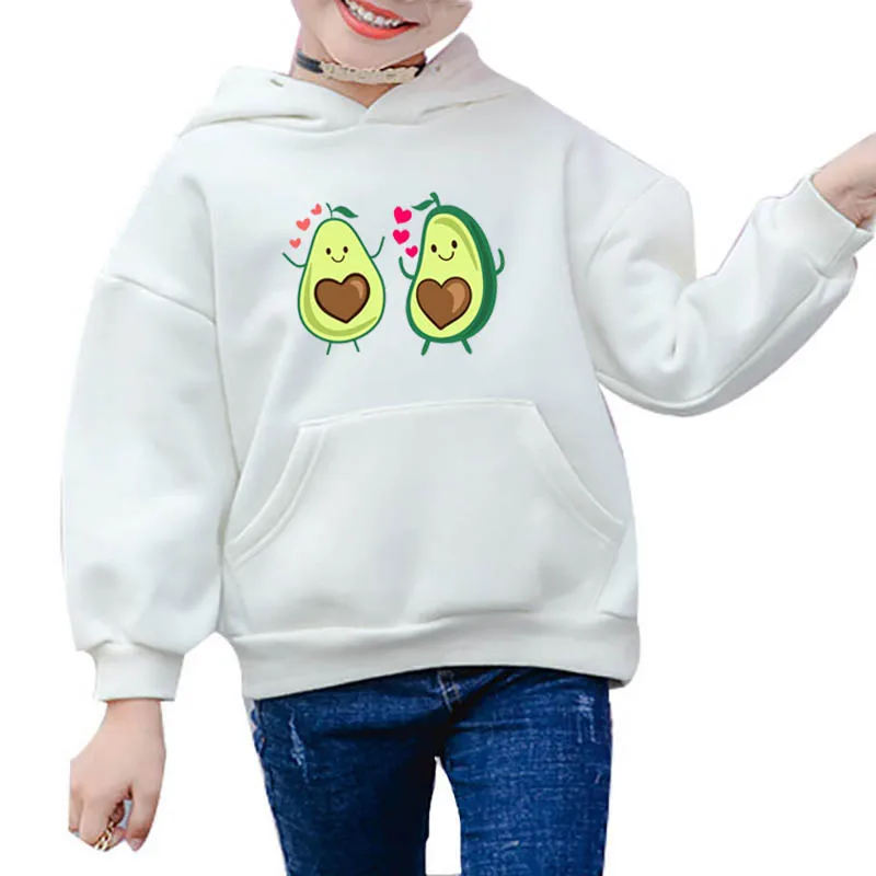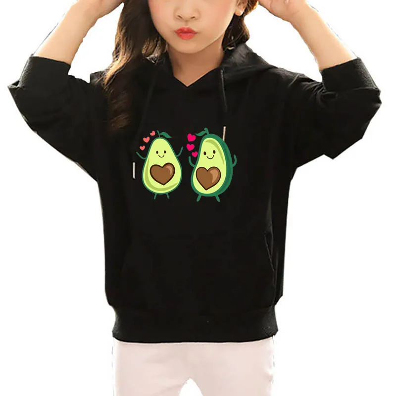 Толстовка с капюшоном с рисунком авокадо для девочек, Милый принт с котом авокадо, зимний черно-белый свитшот для малышей Повседневная теплая одежда