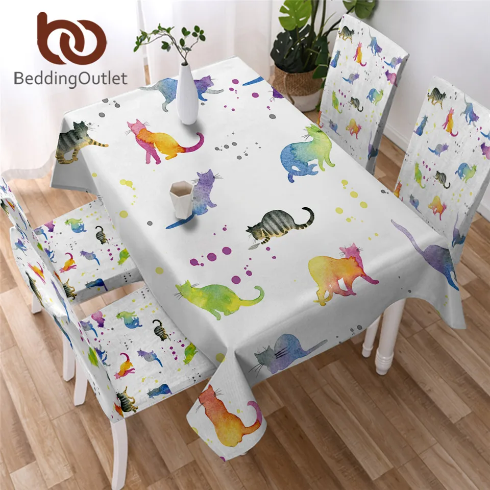 Скатерть для обеденного стола BeddingOutlet, белая скатерть с рисунком кота, водонепроницаемая скатерть для влюбленных животных, белье, домашний декор
