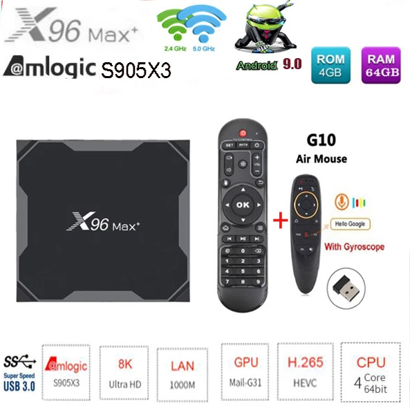 ТВ-приставка X96 max plus Amlogic S905X3, 8k, android 9,0, 2 ГБ 16 ГБ4 ГБ 32 ГБ64 ГБ, Дополнительная воздушная мышь 2,4 ГБ и 5,0 ГБ, WIIF BT4.0, 1000M, pk t95 max +