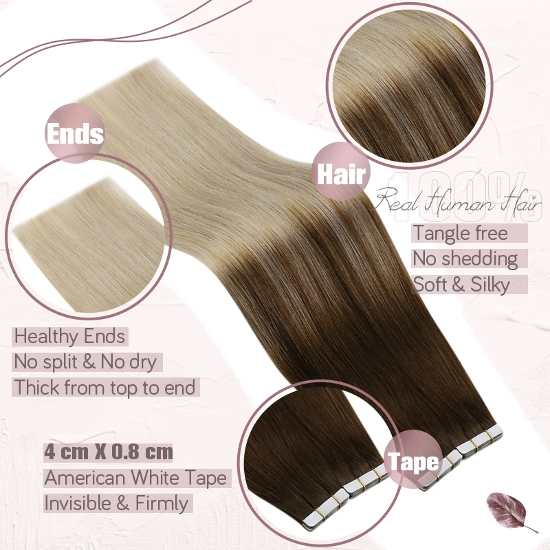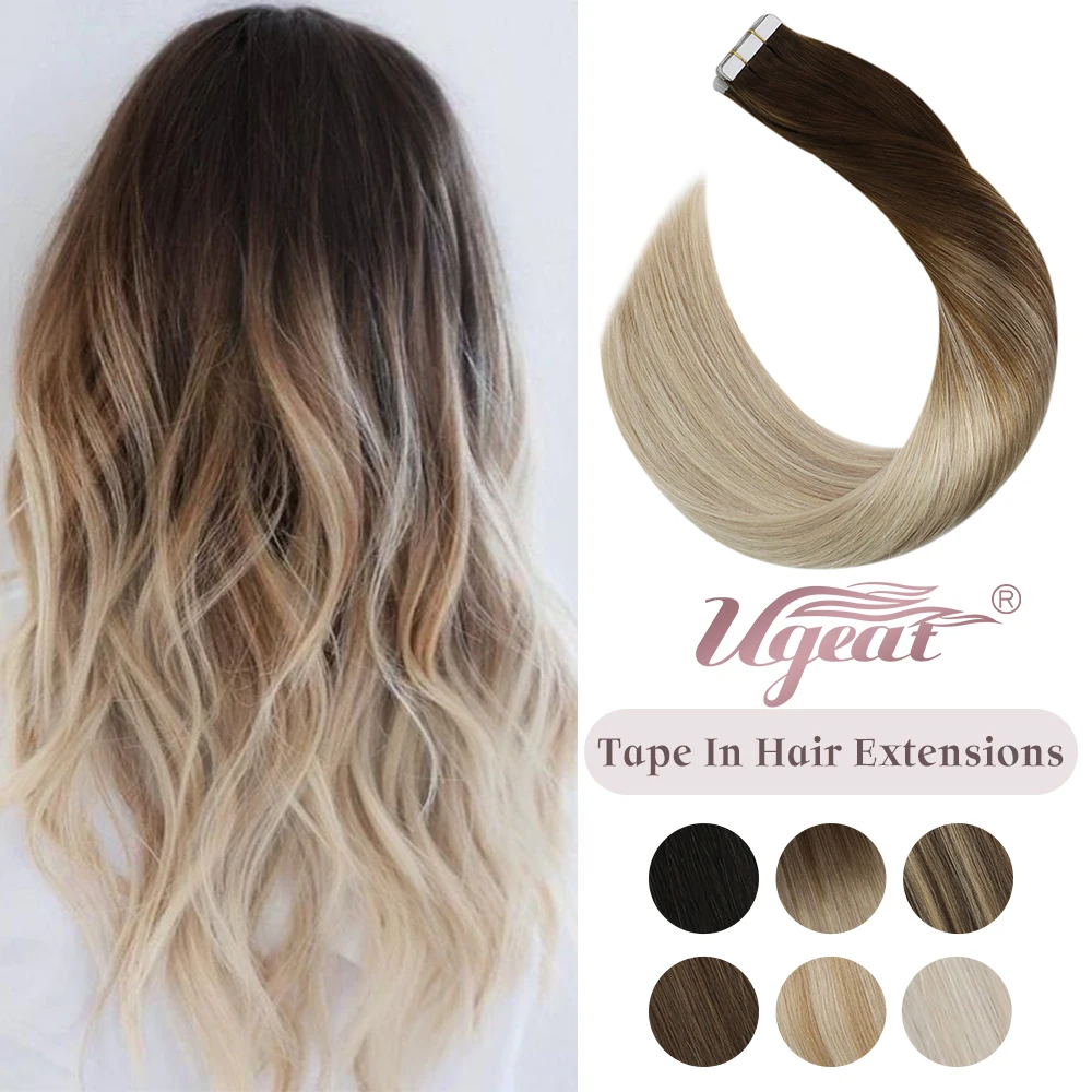 Ugeat лента в Реми человеческие волосы удлинители блонд с коричневыми корнями балаяж бесшовные Невидимые волосы для кожи с уточкой волос 2,5 гшт. 50