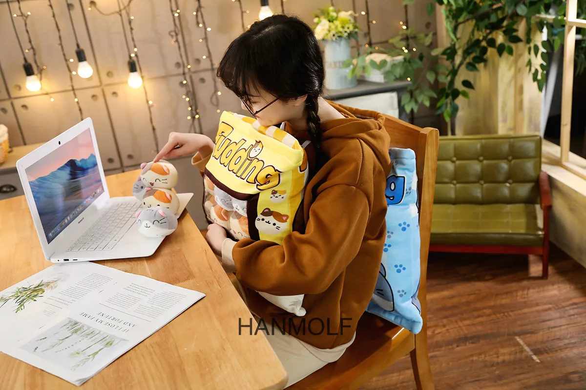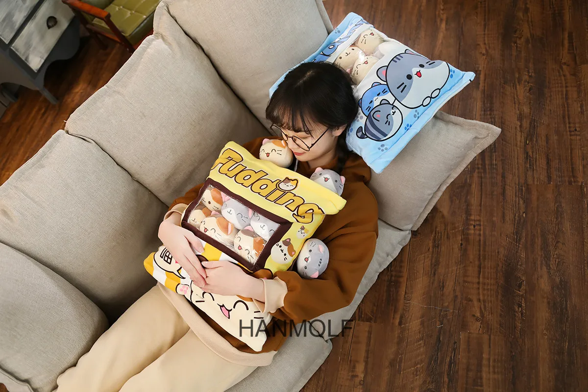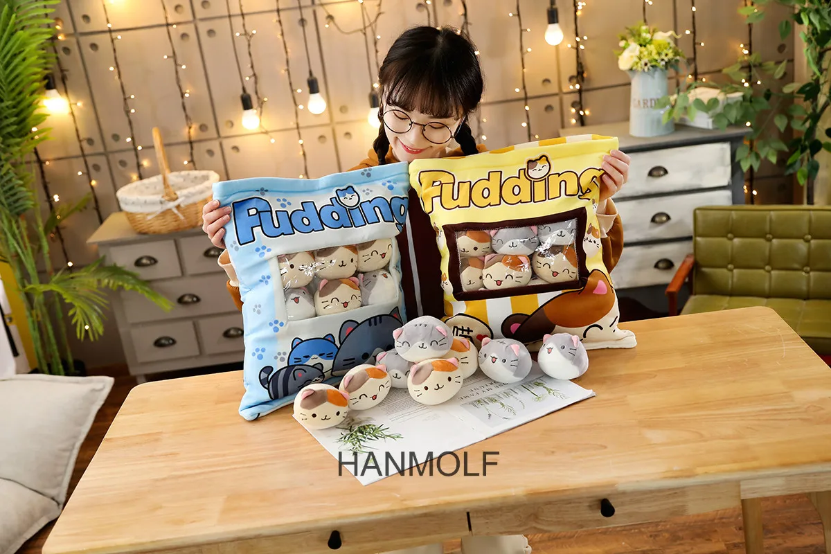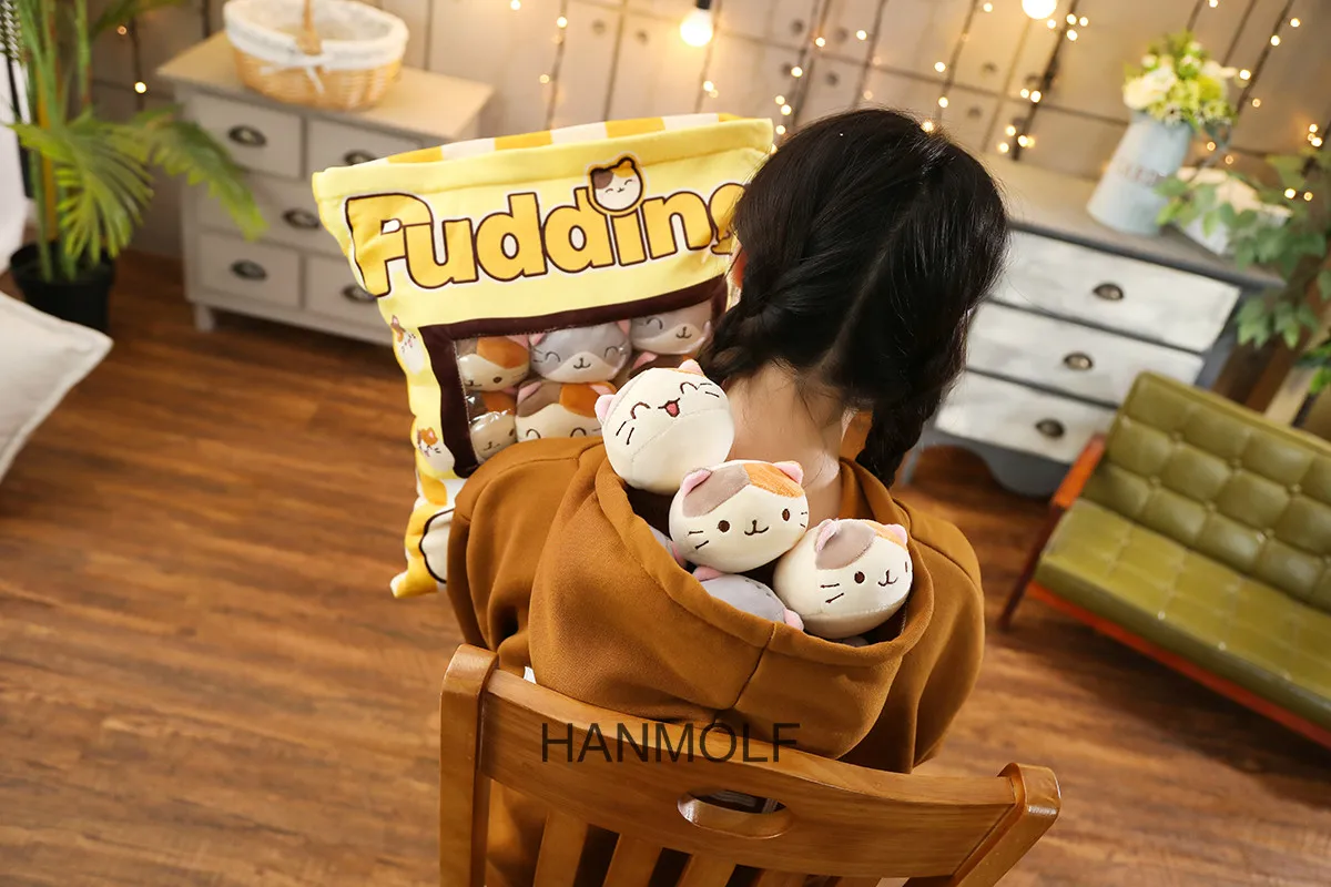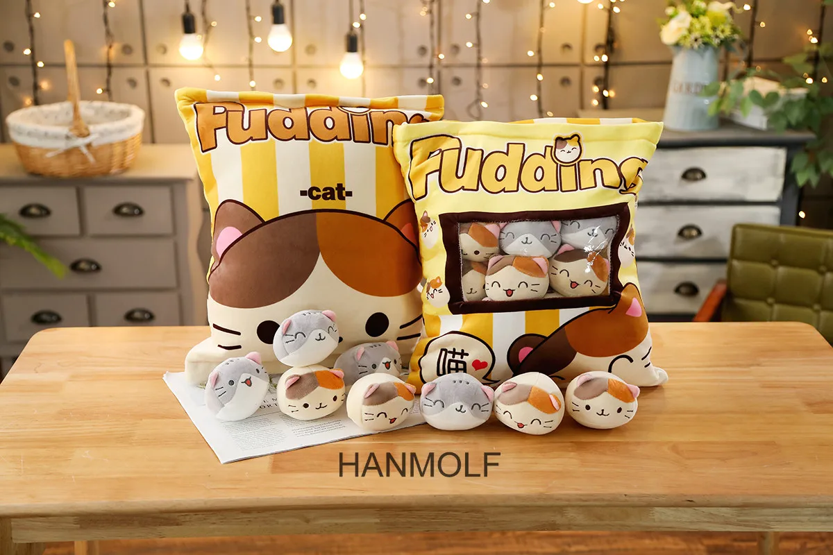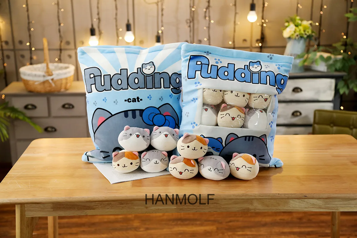 Пудинг, кошка, синяя, желтая плюшевая мини-кукла, животные, 8 шт., пакет для закусок, еда, плюшевый подарок для детей на Рождество, 40*38 см