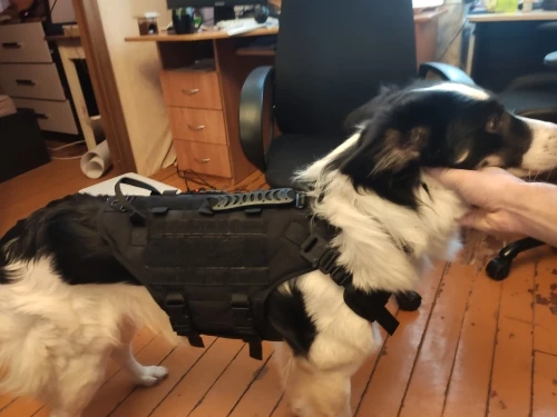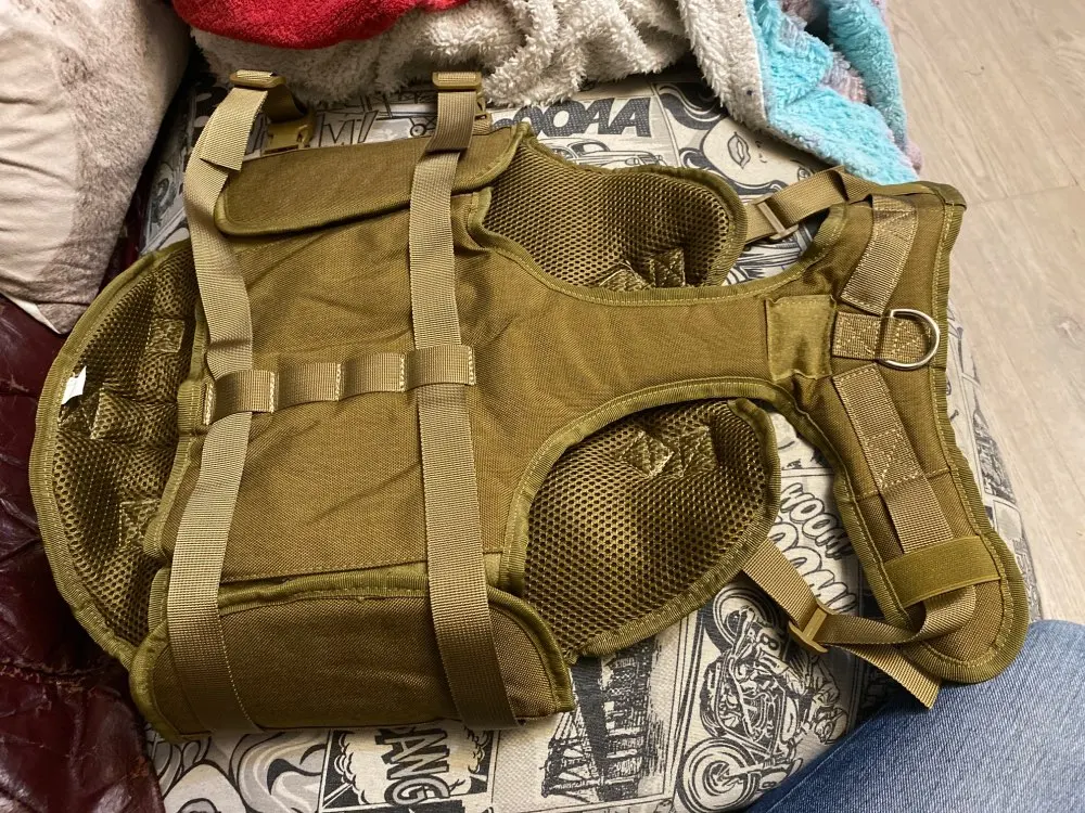 Поводок хорошего качества. Напоминает бронежилет. Все аккуратно сшито, нитки не торчат. Размер Lподошел на крупного лабрадора. Единственный минус, очень долгая доставка. Больше 2,5 месяцев до Минска. Скорее всего, из-за того, что в описании есть "тактический военный жилет". Его на таможне 5 раз возвращали. Трек отслеживался частично.