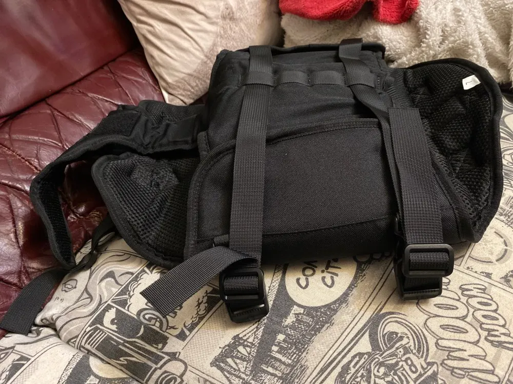 на собаку породы мини сеттер, не подошло. собака не может сходить в туалет, т. к кобура снизу закрывает. тяжелый, много лишних ремней. бестолковая покупка