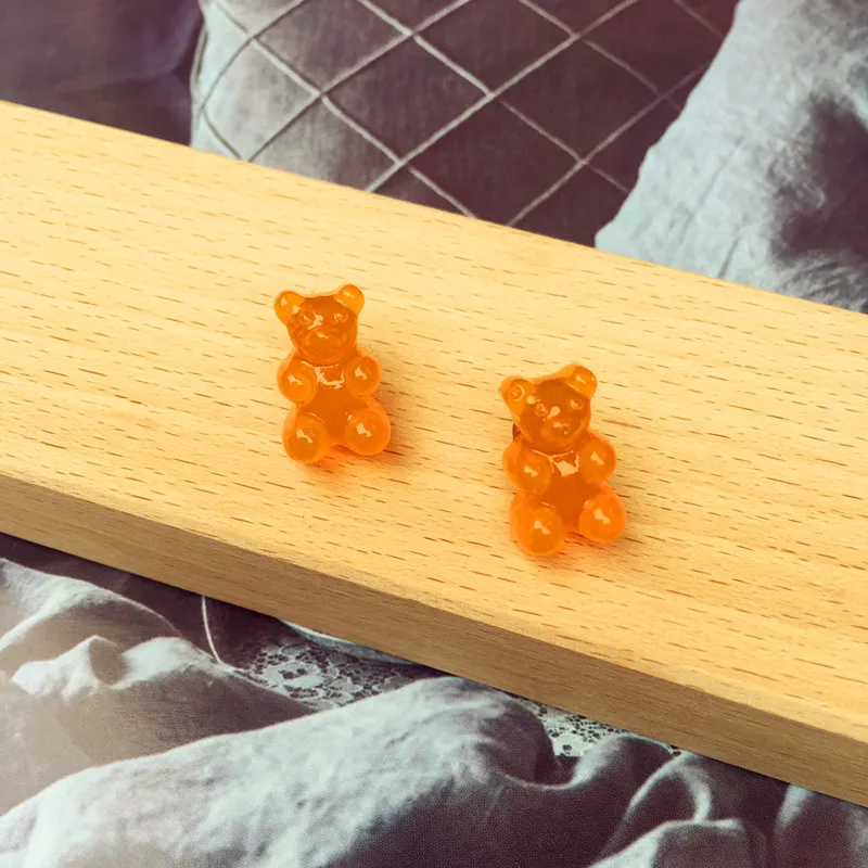 Маленький милый прозрачный жевательный мармелад серьги в виде медведя для женщин, девочек, ярких цветов, мультяшный детский, студенческий, модные полимерные, сережки Oorbellen