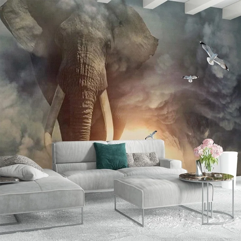 Изготовленный На Заказ 3D фото обои Стикеры Искусство Слон Настенная Наклейка с животными виниловые наклейки на стены Стикеры s настенные украшения Гостиная постер с изображением фрески