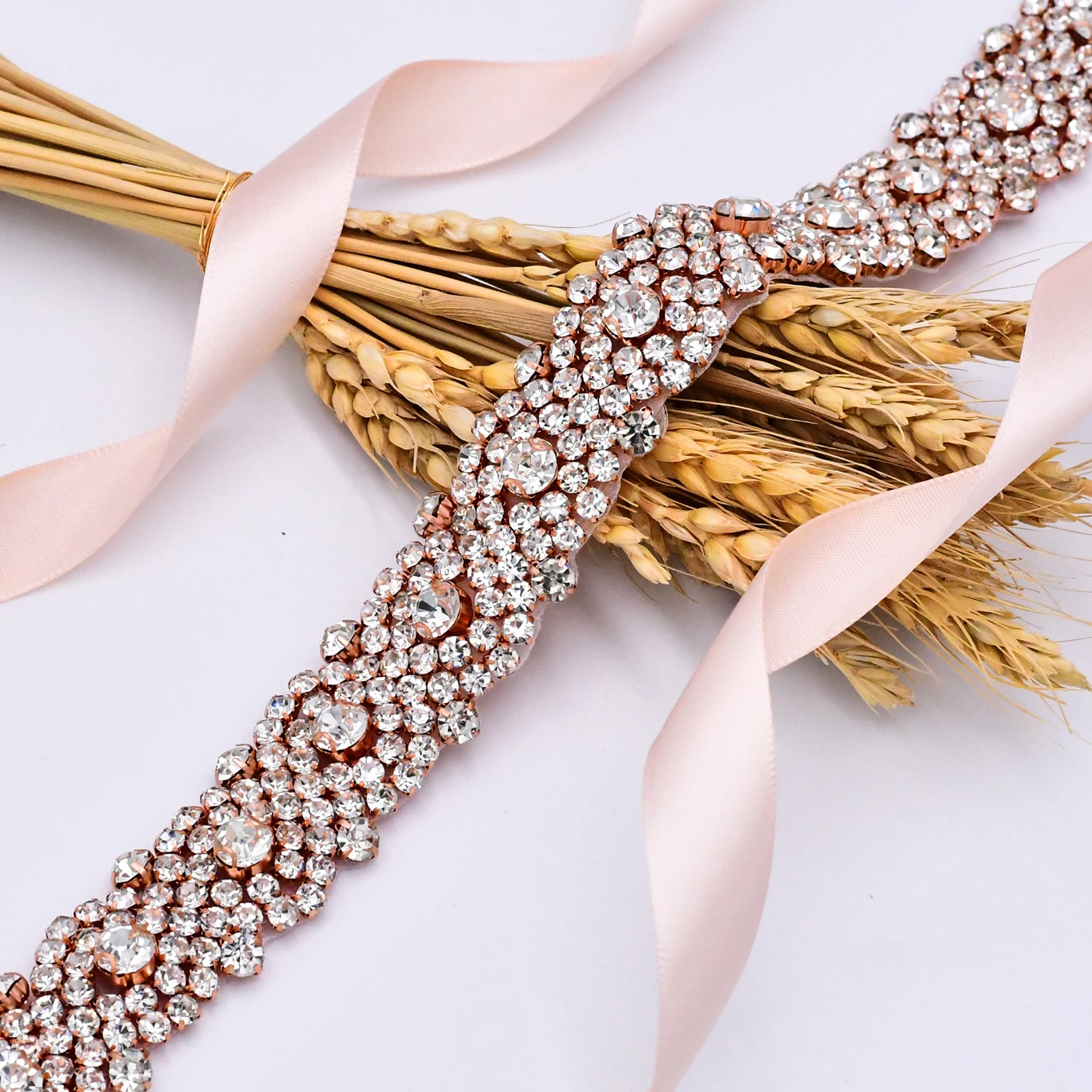 Женский ремень из розового золота, пояс для свадебного платья, пояс для невесты с кристаллами и бусинами, пояс с аппликацией