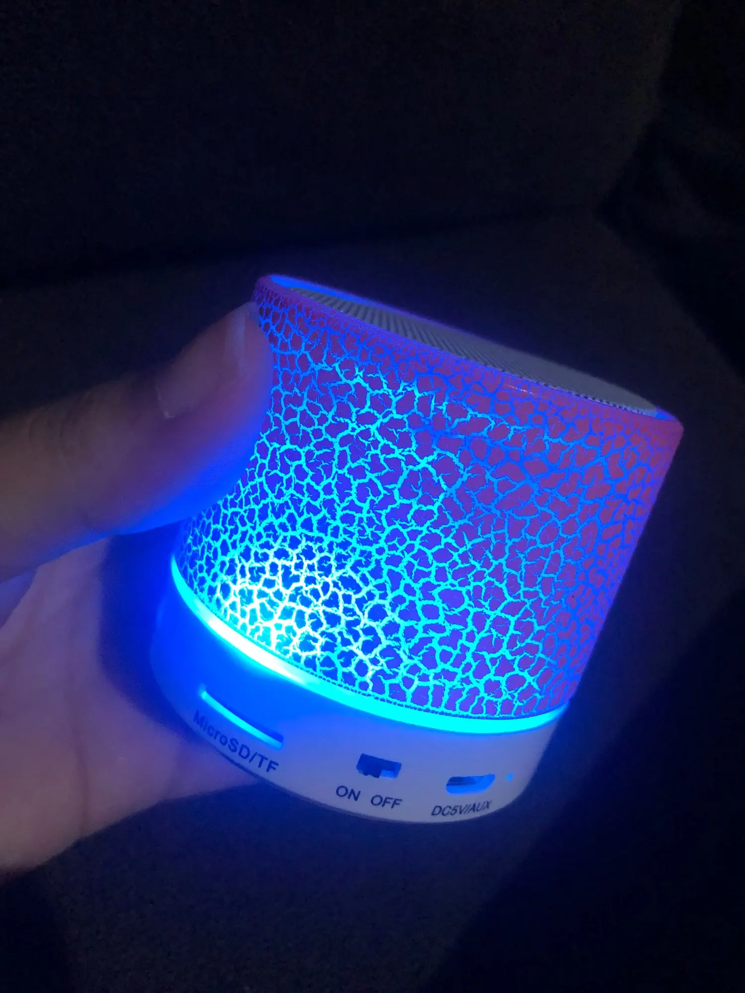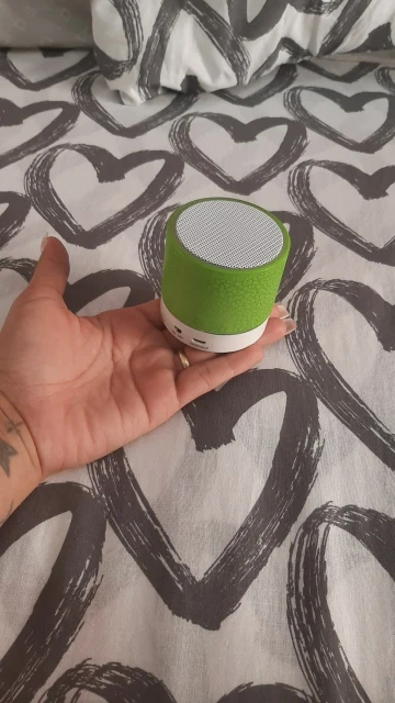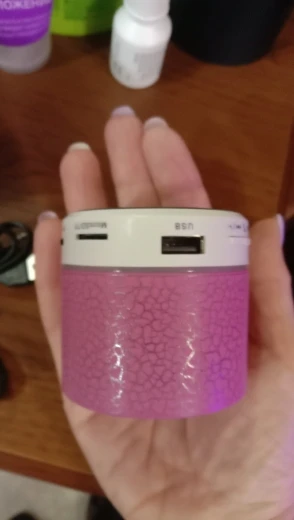 Коробка маленькая, но очень красивая и имеет громкий звук. Батарея не уверены в времени, но вы можете использовать в течение нескольких часов. Свет крепкий и красивый, рекомендую!