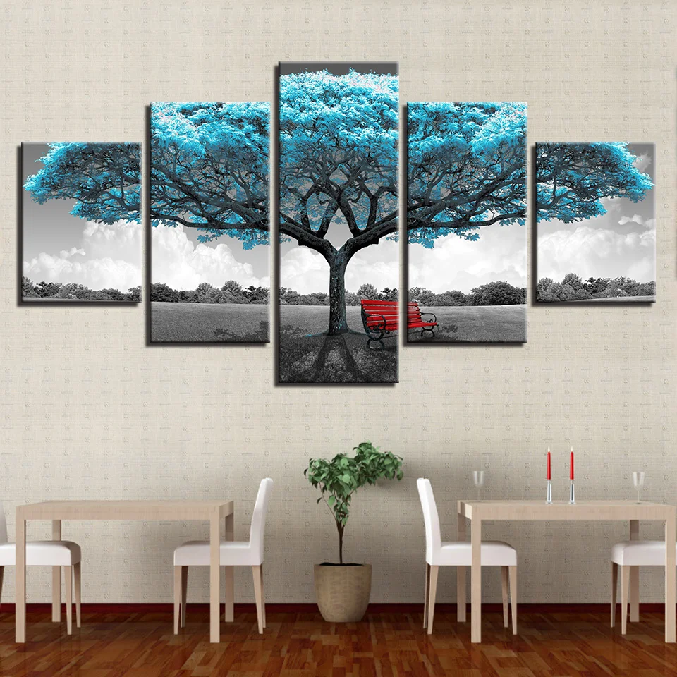 5 шт. Wall Art Холст Paintes пейзаж заколдованное дерево пейзаж кар...