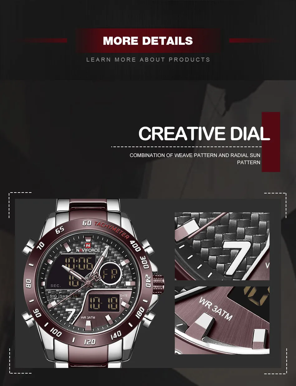 NAVIFORCE часы для мужчин модные аналоговые цифровые наручные часы ...