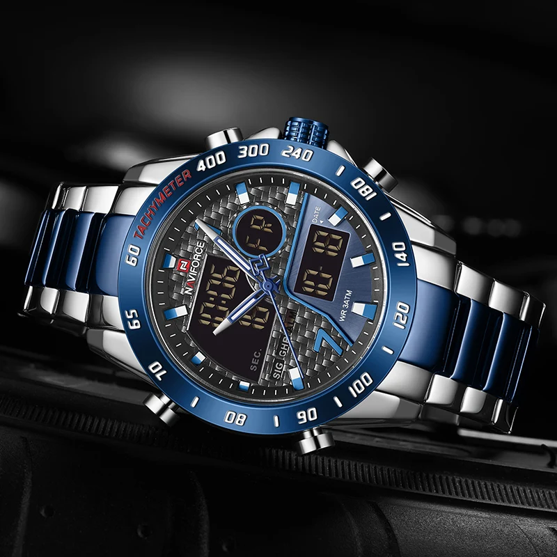 Часы NAVIFORCE, мужские роскошные Брендовые Часы с двойным дисплеем...
