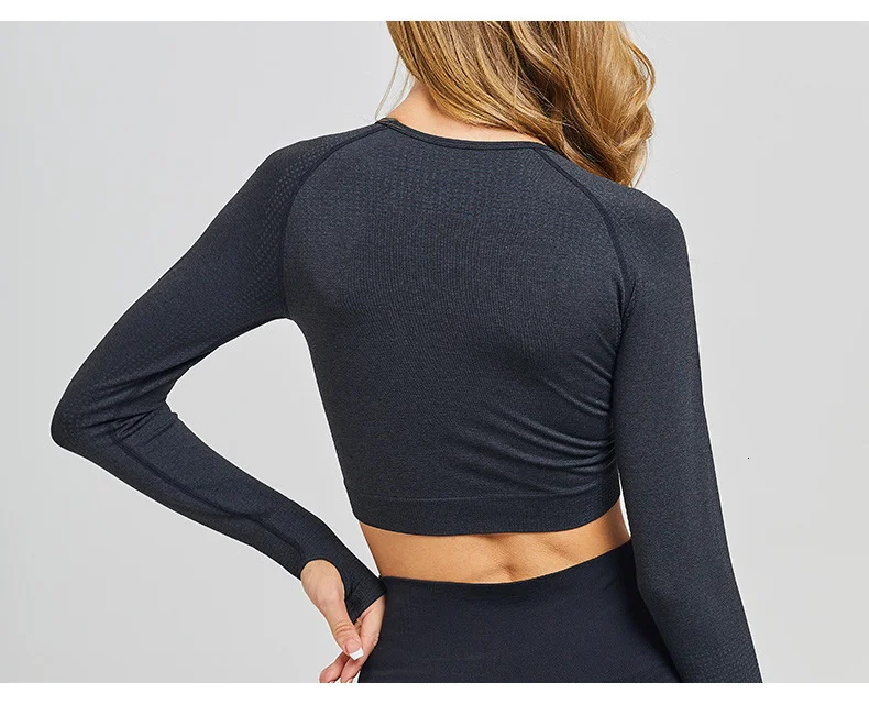 Топ женский бесшовный спортивный с длинным рукавом для фитнеса и йоги