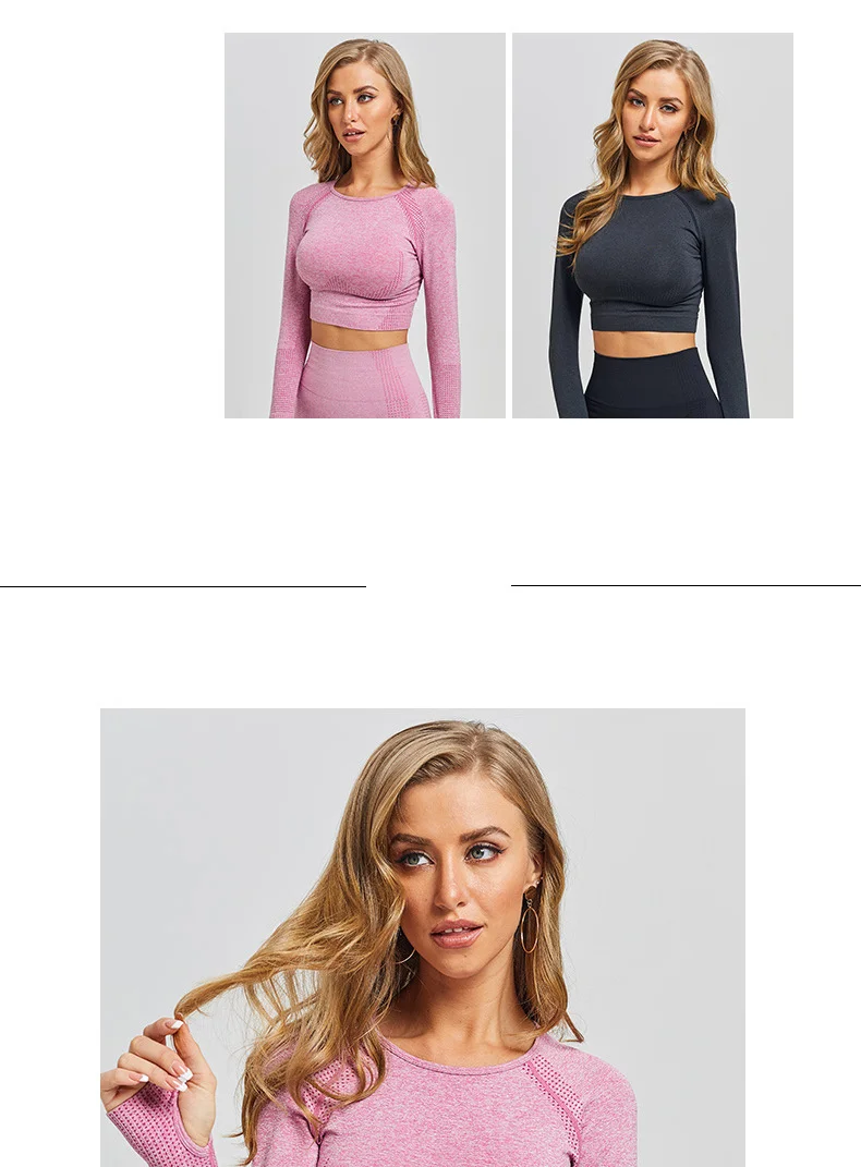 Женская бесшовная рубашка для йоги, Топ с длинным рукавом, спортивн...
