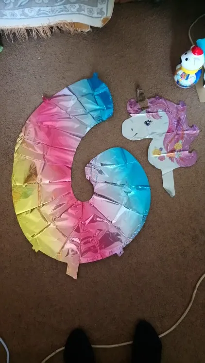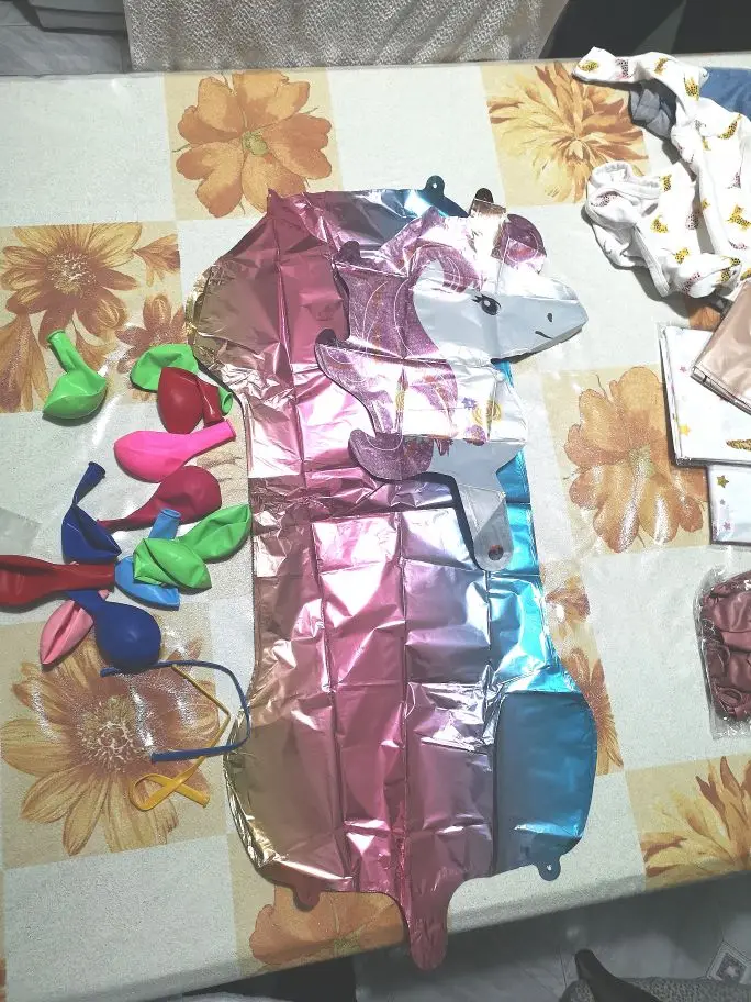 Это очень хороший размер. Поставляется с воздушным шаром единорога и другими