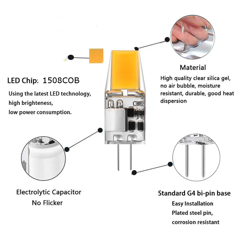 Двухконтактная Светодиодная лампа G4, ее можно легко установить по сравнению с обычными галогенными лампами.