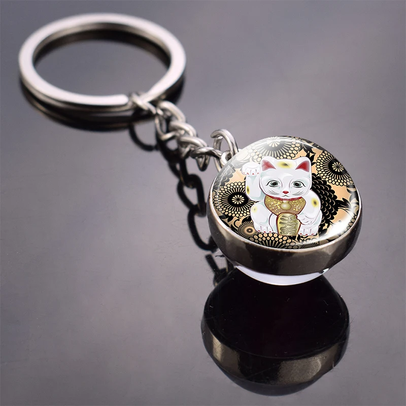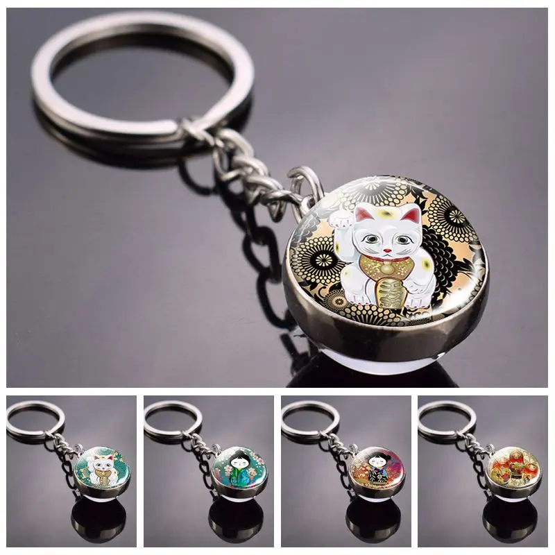 Брелок для ключей в виде кошки, со стеклянным шариком, мультяшный, ...