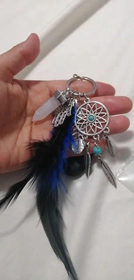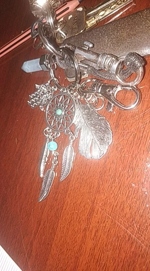 Как дверные ключи, но был немного разочарован, когда увидел перья и камень не соответствует изображению, который представлен, потому что он был так заказан... однако качество кажется хорошим.