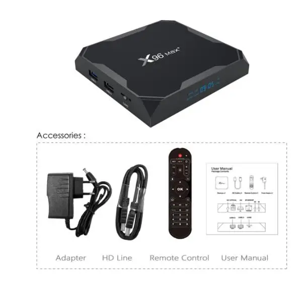 ТВ-приставка X96 MAX Plus, Android 9,0, 4 + 6432 ГБ, Amlogic S905X3, 2 + 16 ГБ, 8K, Wifi, Youtube, 1000 м, 8K, 20 шт.