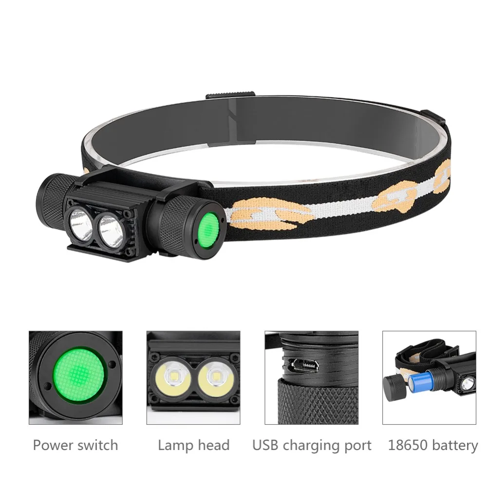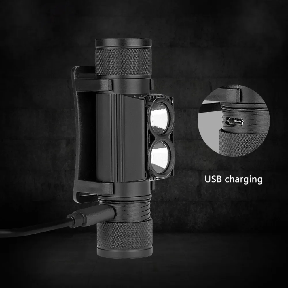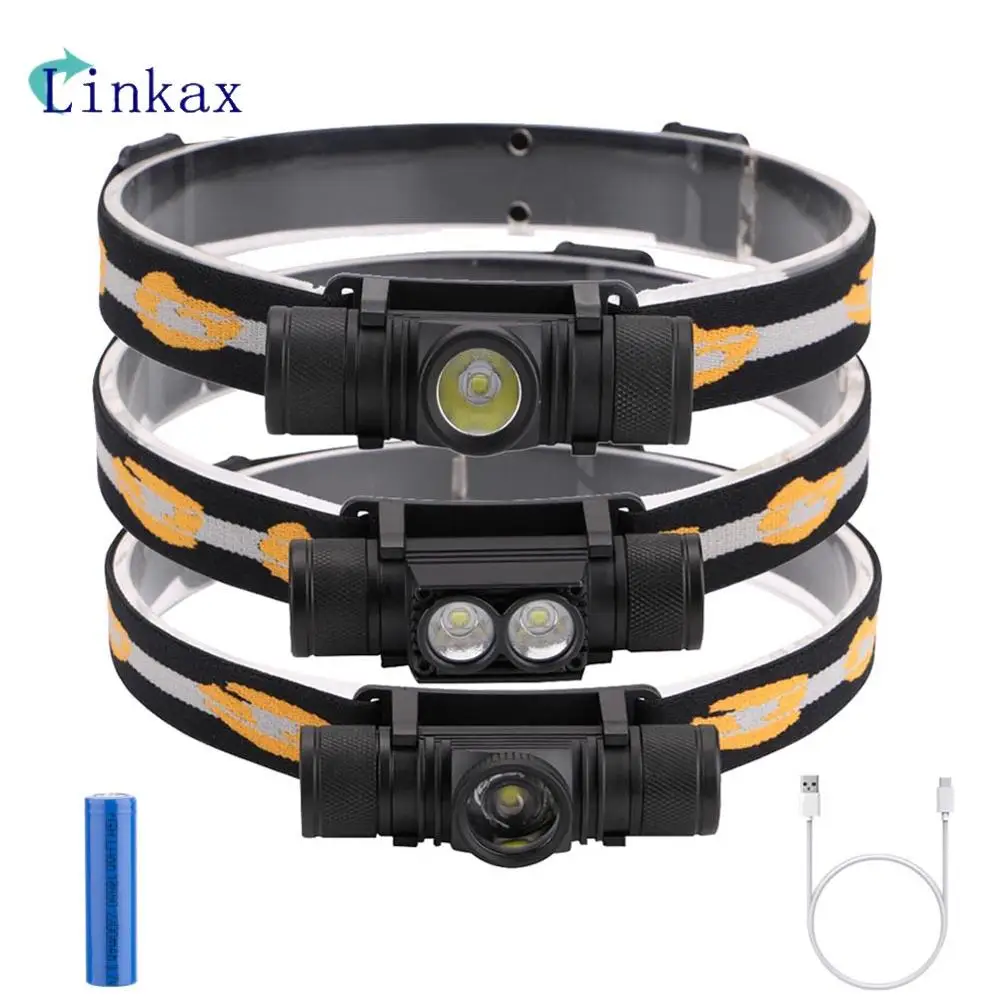 Налобный фонарь, XM-L2 лм, 6 режимов, USB, перезаряжаемый, с аккумулятором 18650, для кемпинга, рыбалки, охоты