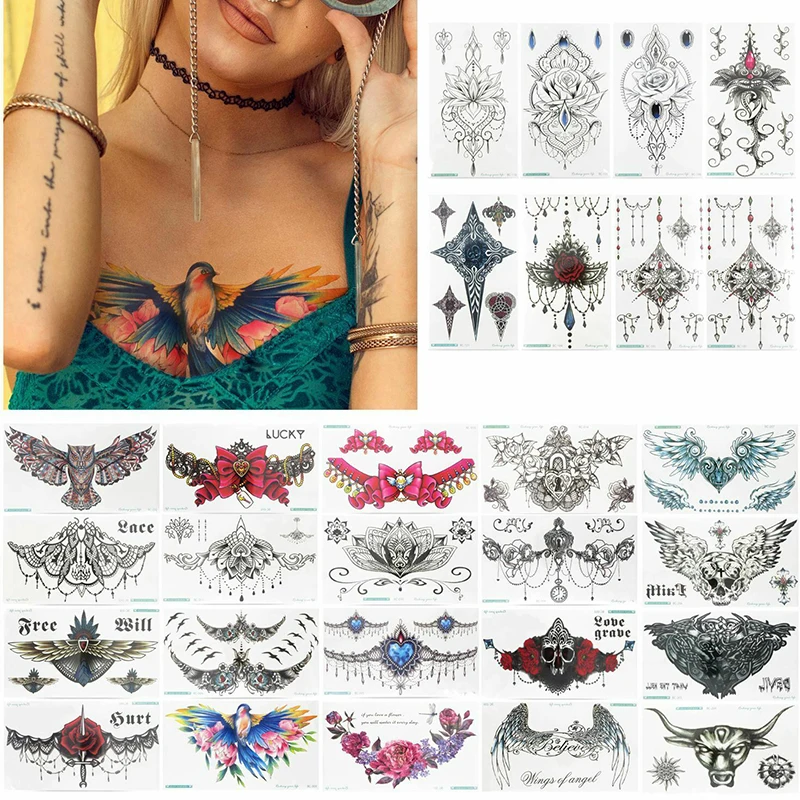 1 лист тату на грудь, цветы, птицы, плечи, руки, грудь, тату хной, телоспина, краска под грудью, тату