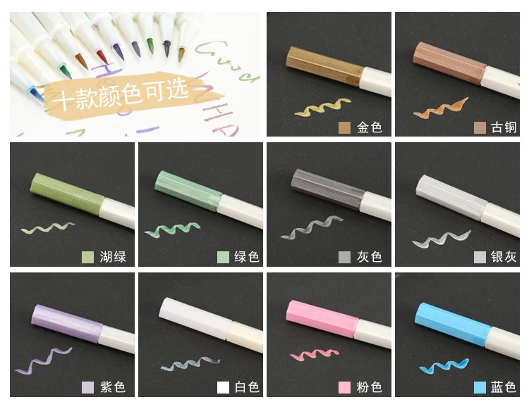 10 цветов мягкая кисть Head STA металлический цвет ed Ink Водяная ручка для скрапбукинга фотоальбома рисования акварельные художественные маркеры гелевые ручки