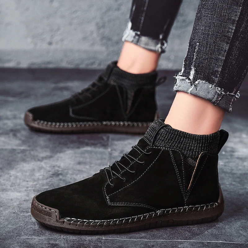 Мужские ботинки из замши, с плюшевой подкладкой, теплые мотоциклетн...