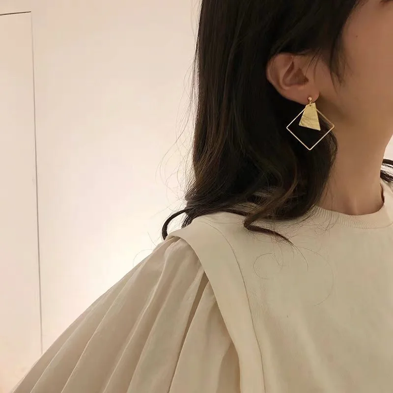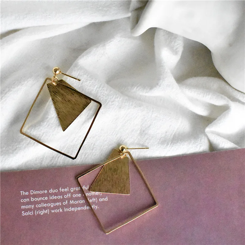 Золотые геометрические Висячие серьги для женщин и девушек, эффектные медные металлические Висячие серьги из сплава, бижутерия для свадебной вечеринки