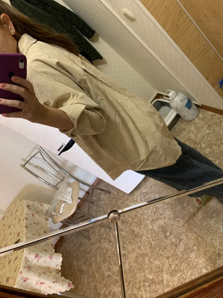 Хорошее качество. Покупала за 1116,13₽. Могу рекомендовать к покупке. Очень оверсайз. Я заказала размер S. Единственное, сзади не ожидала что подол такой длинный будет, и пуговки так как вельветовые тоже, тяжело застегиваются, но это совсем не проблема))