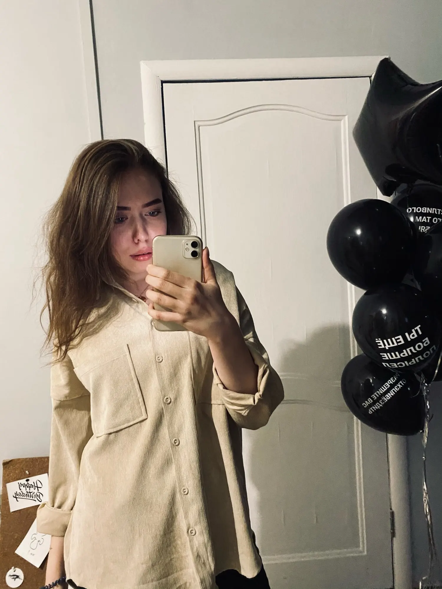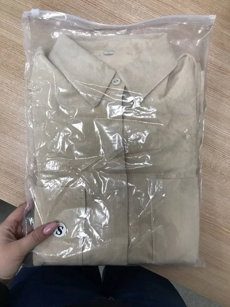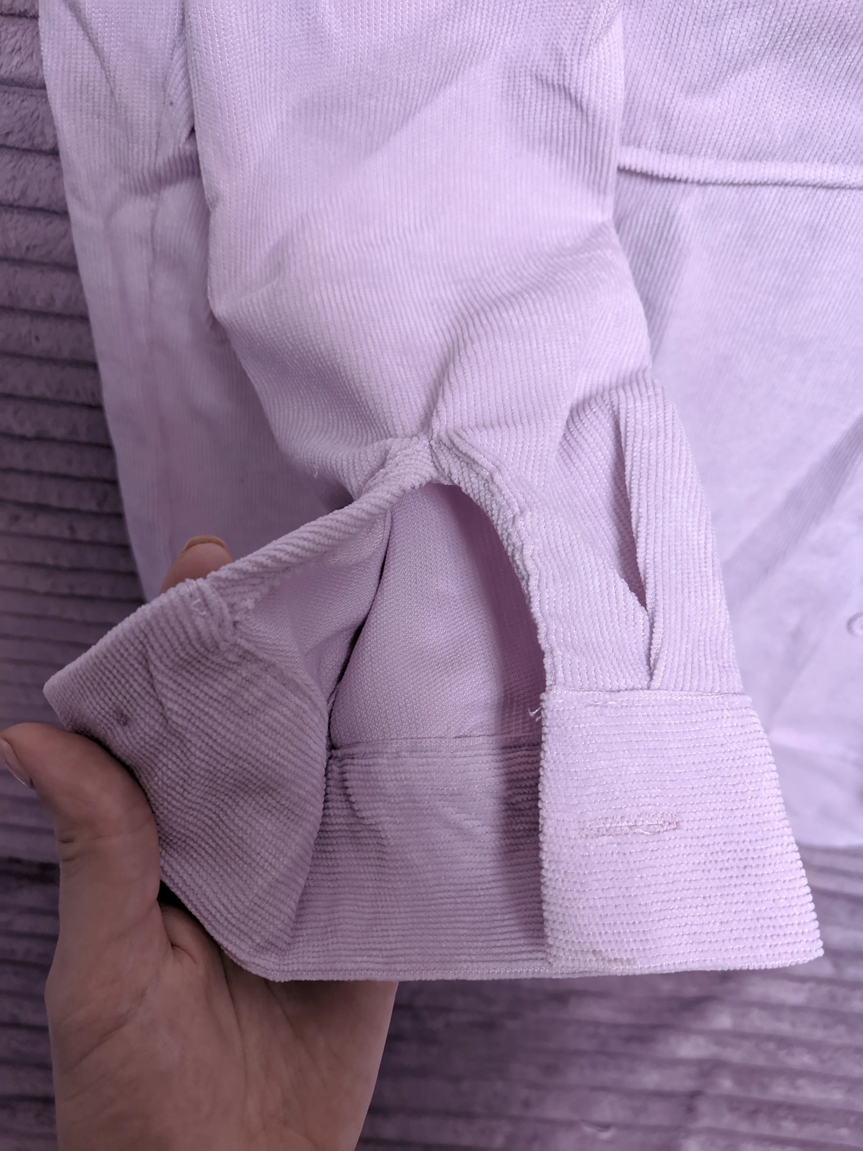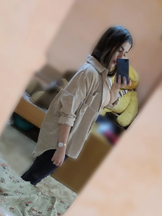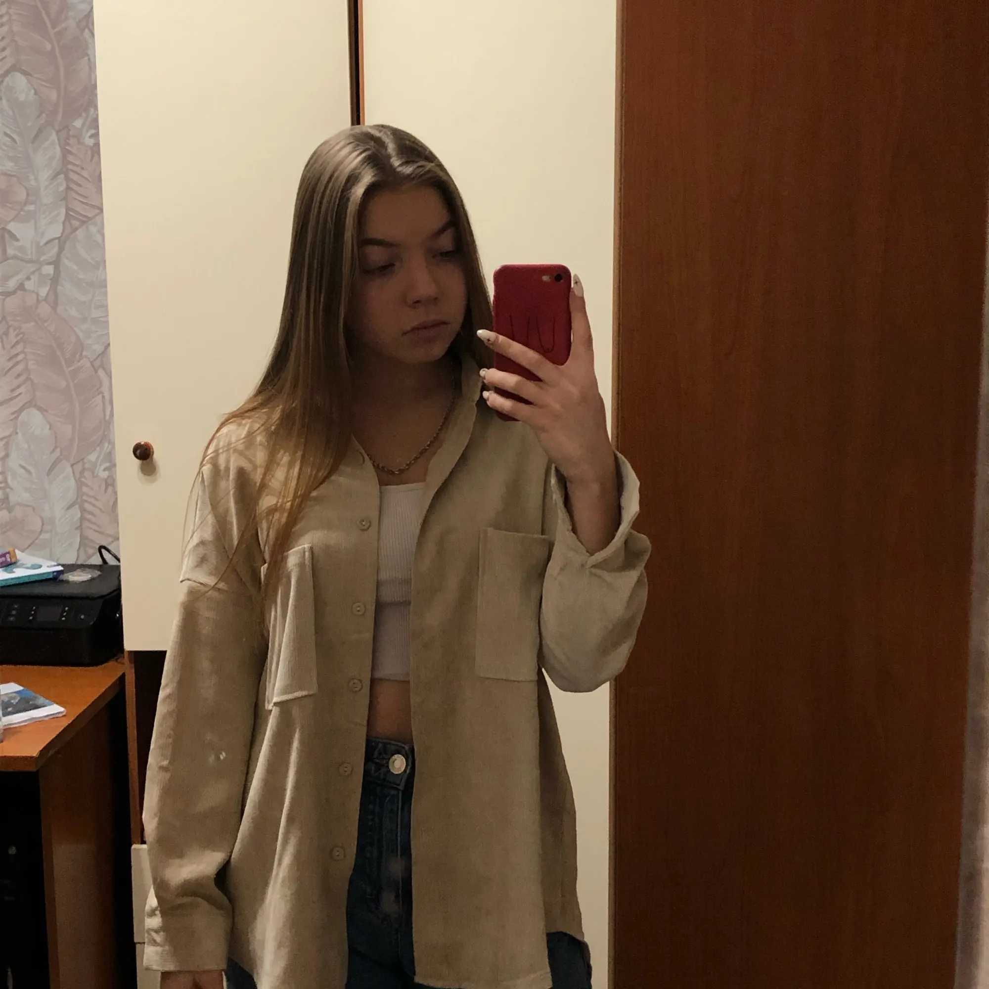 Доставка быстрая, в Екатеринбург за 2 недели. Рубашка оверсайз, как я хотела, только рукава какие-то короткие и узкие в манжете, для девушек с полными руками может не подойти, а высоким точно будут короткие. Материал рубашки под вельвет, но не такой плотный и тяжелый, похоже на материал для мягких игрушек. Карманы пришиты ровно, симметрично вроде. Кое-где торчат нитки, но не критично. С изнаночной стороны ткань какая-то неоднородная - будто в катышках, но наощупь гладкая. Еще странно, что части рубашки, где пуговицы и дырочки для пуговиц, не прошиты, просто сложены. В целом рубашка нормальная, буду носить. Мои параметры: 90-65-93, рост 161