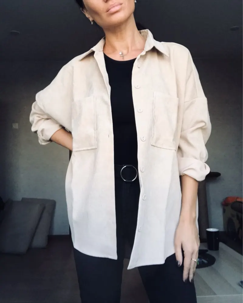 Рубашка женская Вельветовая, оверсайз, в стиле бойфренда