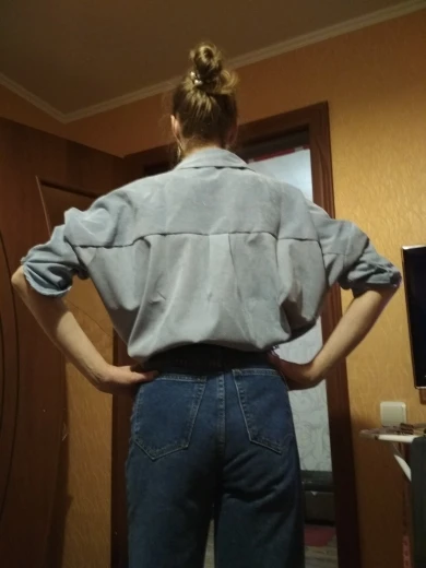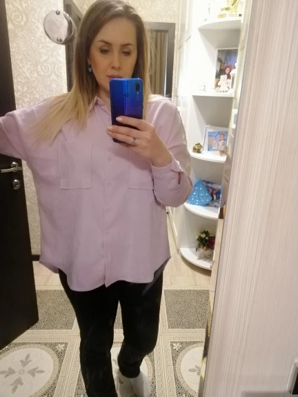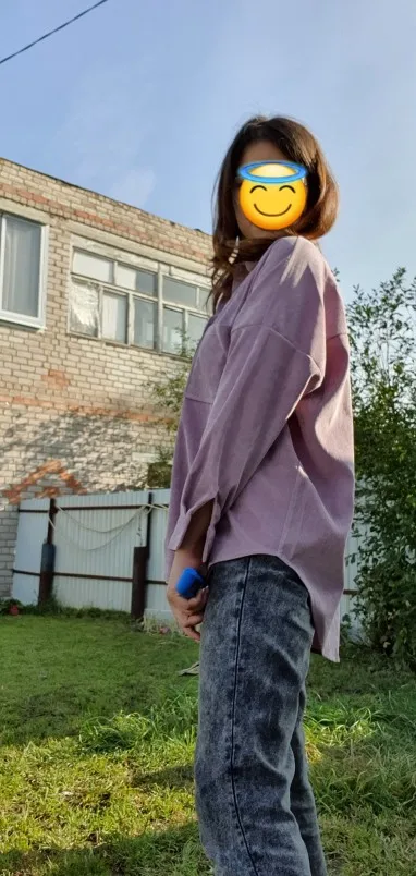 Рубашка - бомба! Особенно за эту цену. Планирую приобрести других цветов. На мой 50й российский размер подошло идеально, оверсайз, длинновато на рост 152см, но это уже дело не в рубашке. Уже стирала раза четыре, никаких катышков, дырок или расползшихся ниток. Классные пуговицы, обтянутые материалом, сразу как-то "подороже" что ли смотрится.