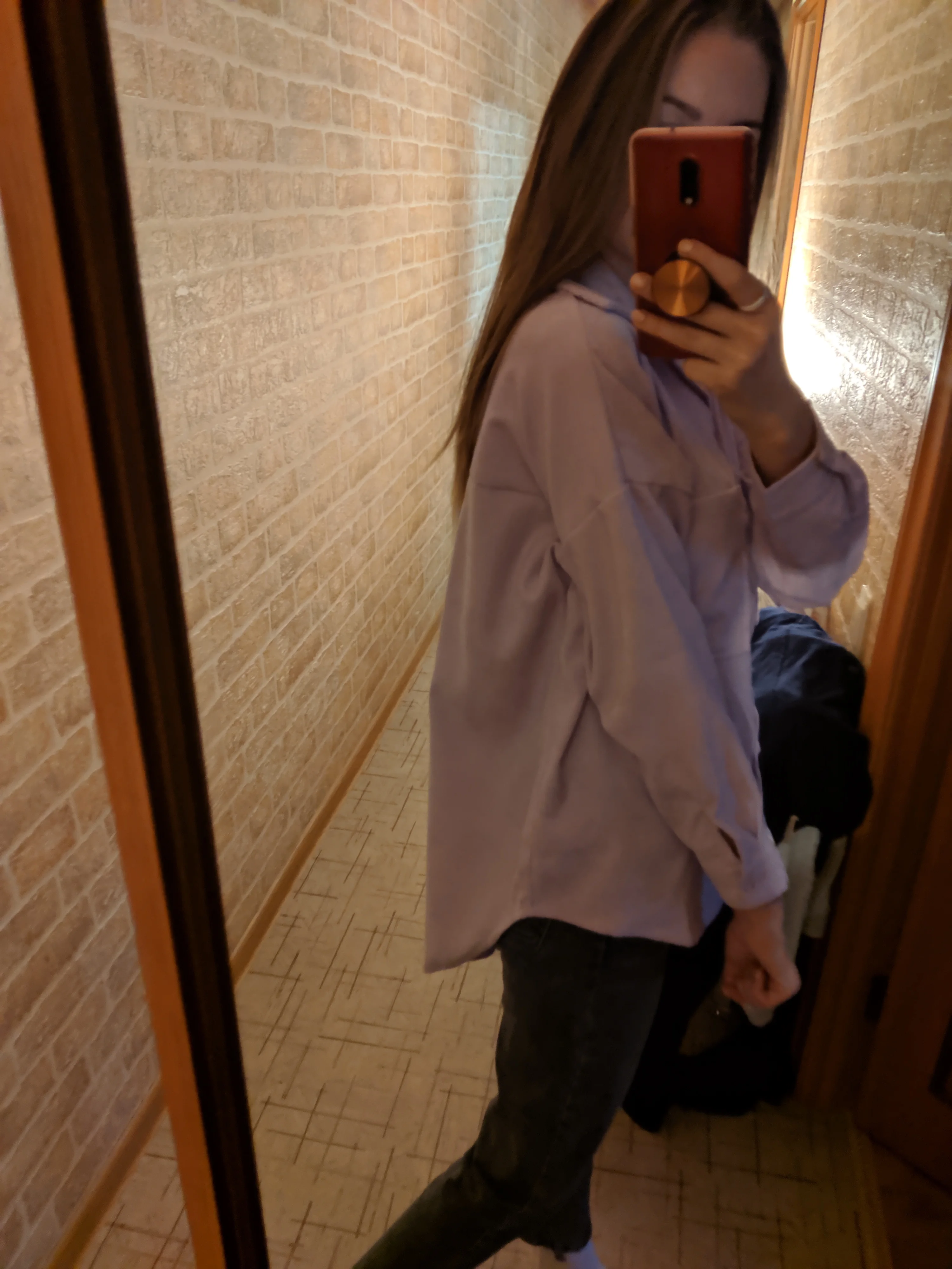 Приятная рубушка, рукова коротковаты на мой взгляд (мой рост 168). Оверсайз, свободно и просторно, можно одеть футболку или водолазку под низ. Цвет интересный, на фото у продовца он другой, в отзывах точнее ! Продавец отправил на 3 день рубашку, а пришла на 13, раньше срока, доставка очень радует