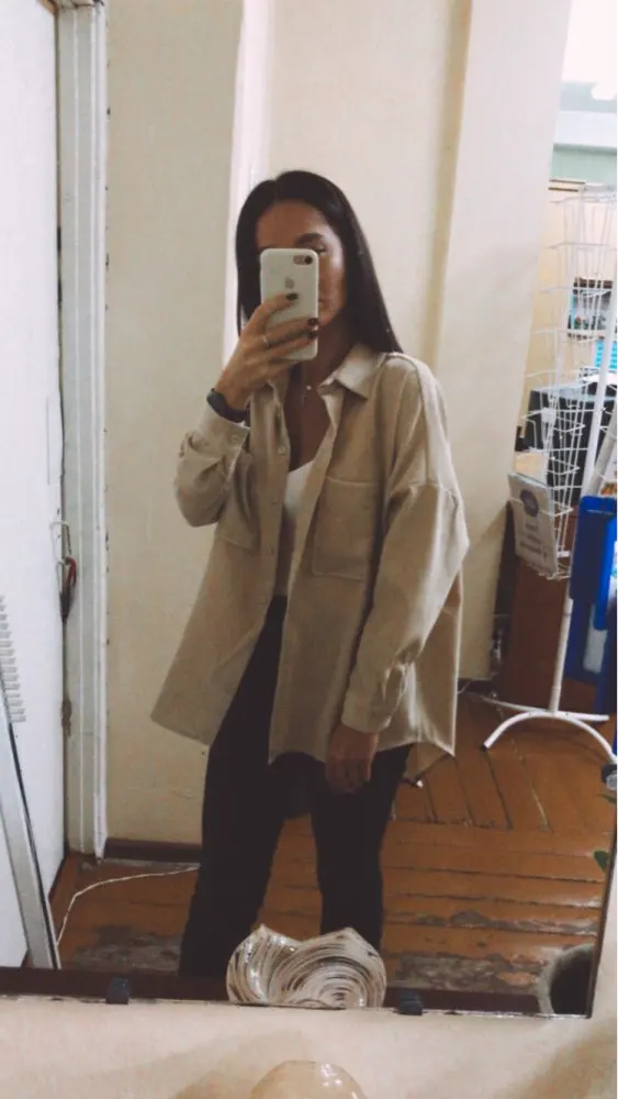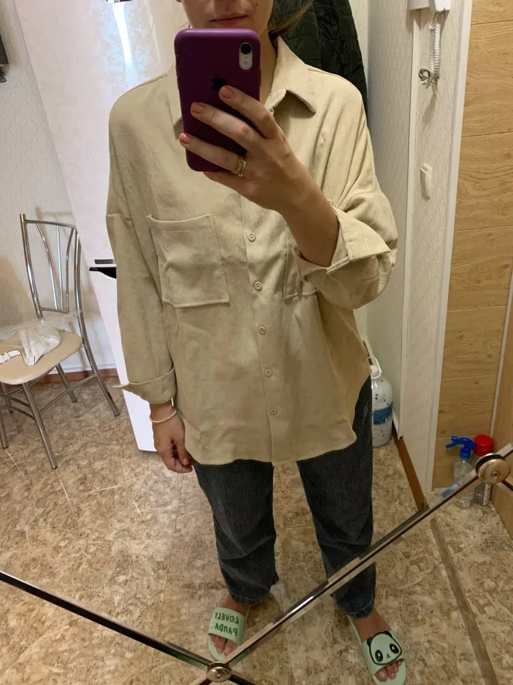 ПОЛЕЗНЫЙ ОТЗЫВ, ДЕВОЧКИ Рубашка пришла быстро, за ±2 недели до Киева. С продавцом не общалась. Покупала со скидкой алика + ещё какие то скидки были, получилось 290грн!!! А теперь самое интересное) Точно такие же рубашки продаются в масс маркете Страдивариус и Зара по 800-1000грн. Фасон, длинна, качество, размеры - точь в точь одинаковые. Можете приходить в магазин, мерять там и заказывать тут у продавца))) На фото снизу бежевая рубашка Китай в размере С, и голубая рубашка от Страдивариус в размере С. Они идентичны. Не переплачивайте и заказывайте тут Мой рост 167, параметры точно не знаю, всегда ношу размер С. Сзади она удлиненная и прикрывает попу, заправить ее не получится и вот так сверху на футболку или майку она смотрится СУПЕР. Она оверсайз, так и должно быть, рукава по длине нормальные, хс были бы маловаты наверное, руки у меня самые обычные))) СИЛЬНО РЕКОМЕНДУЮ!!!