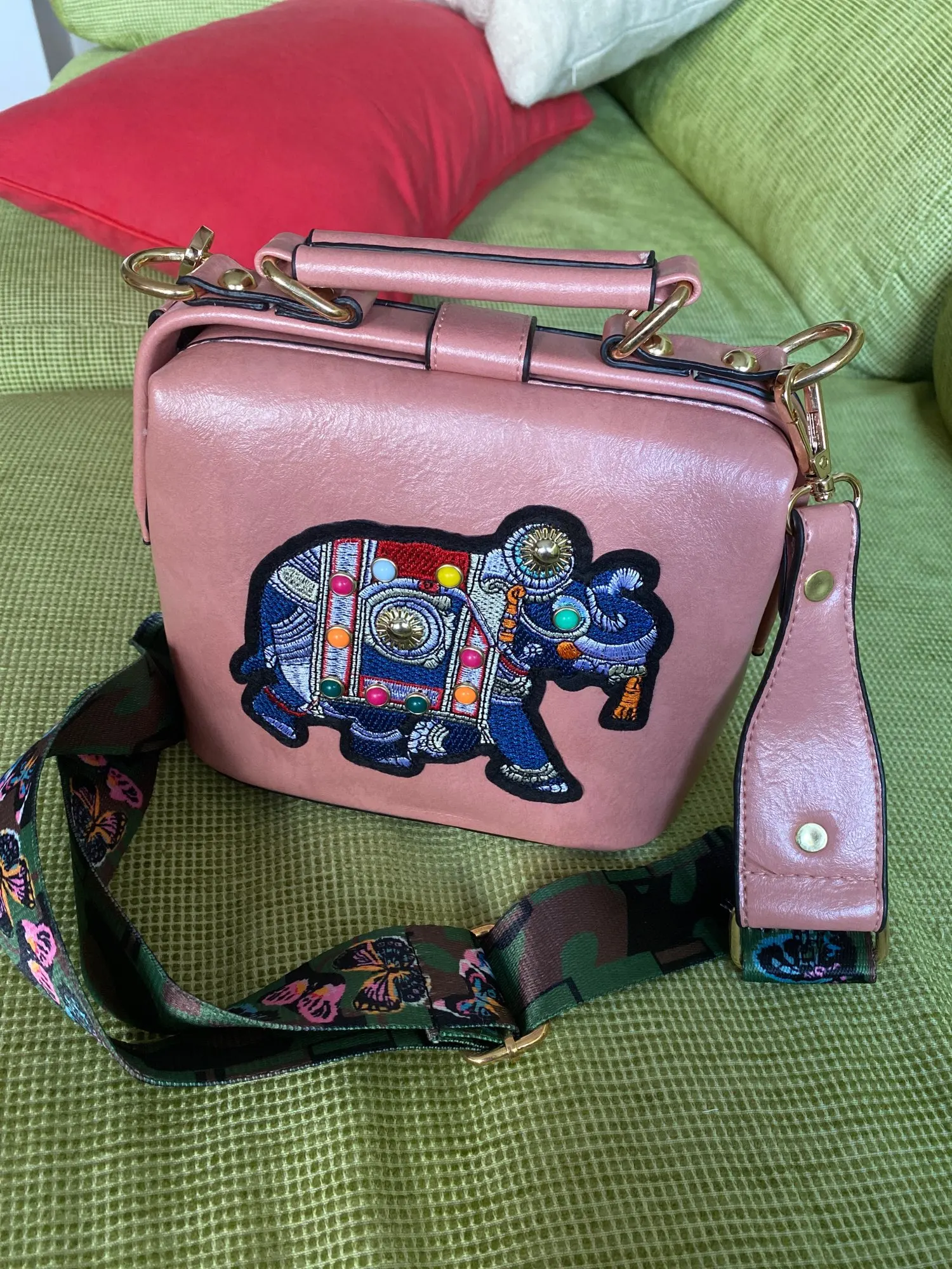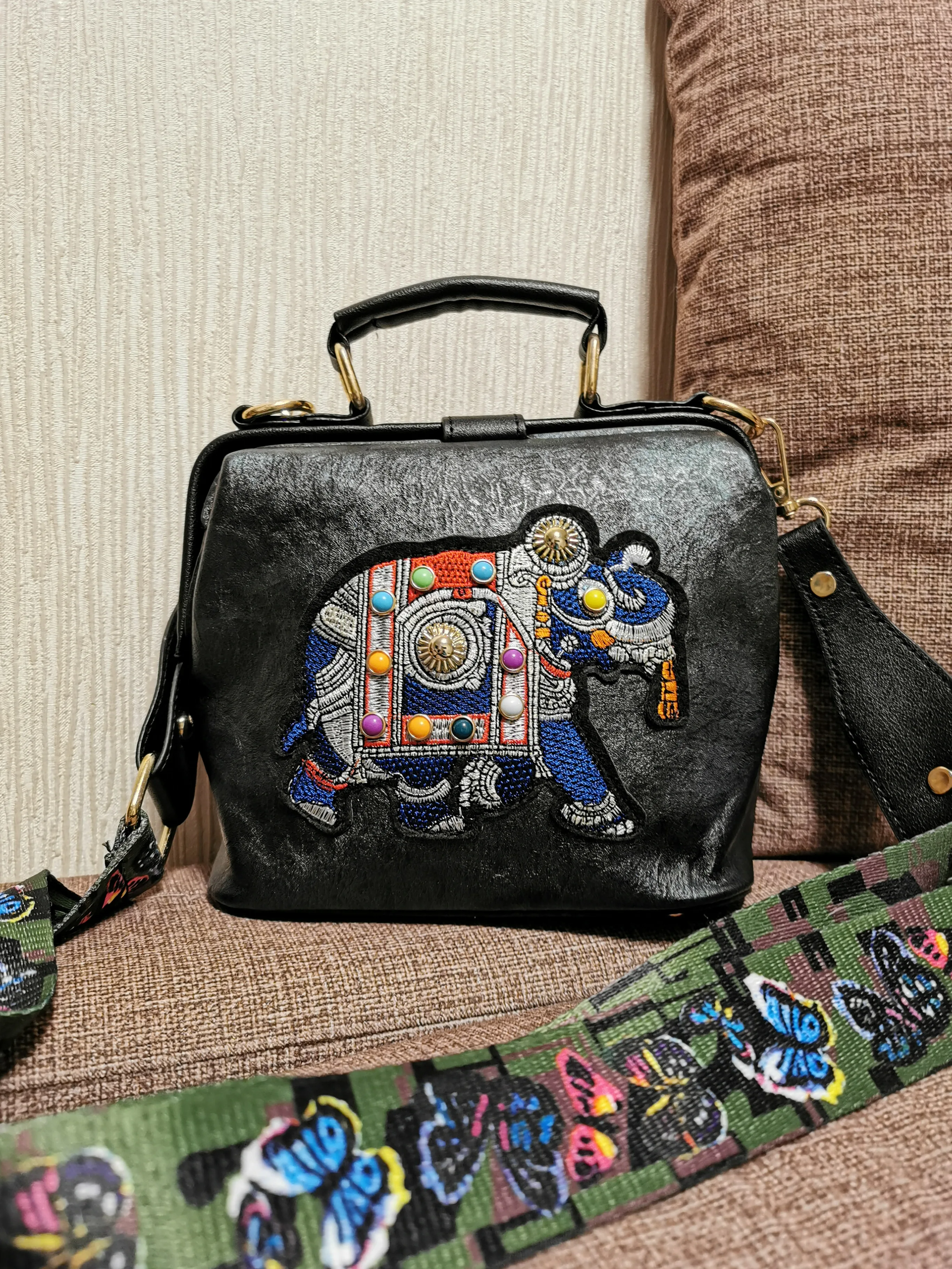 Винтажная сумка со слоном с вышивкой, сумки с широким ремешком-бабочкой из искусственной кожи, женская сумка через плечо, женские сумки-тоуты, кошельки