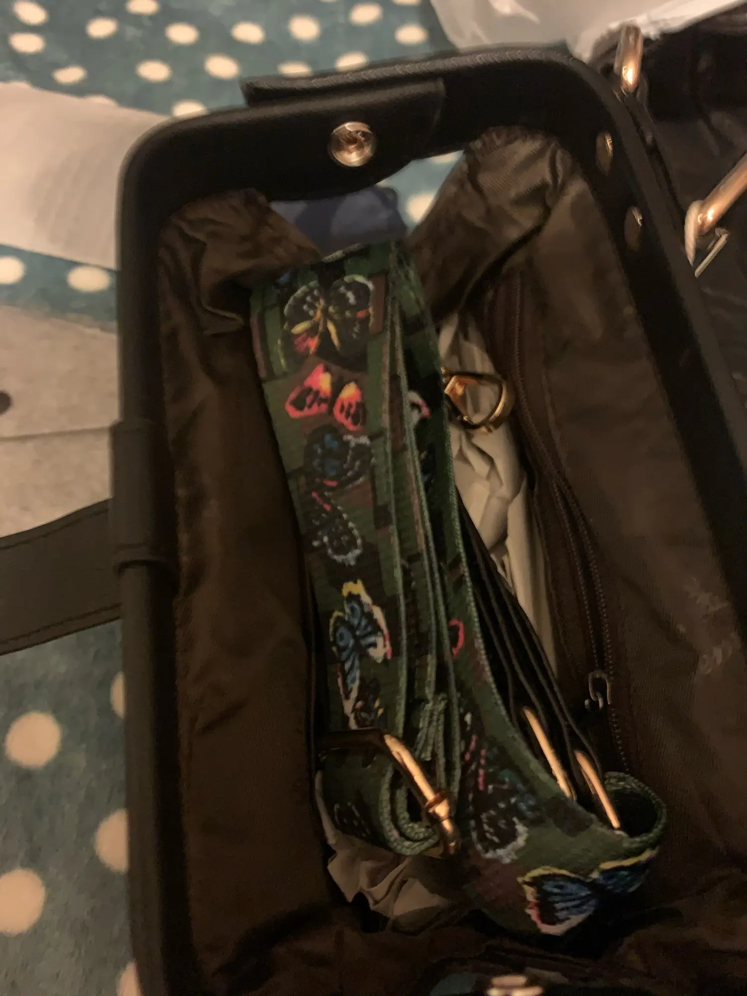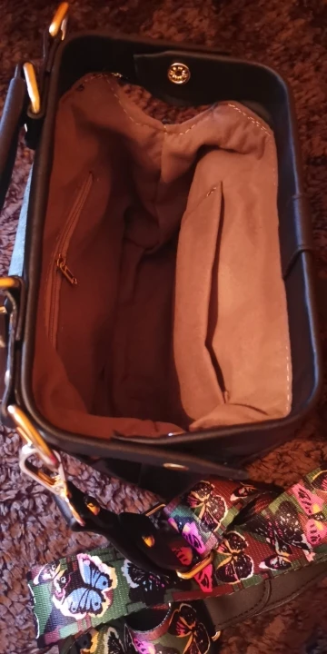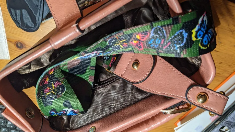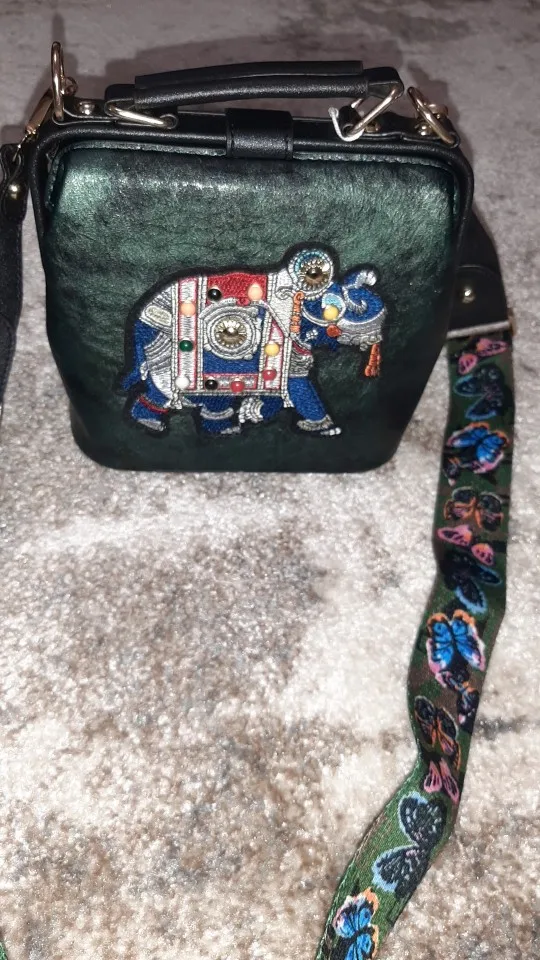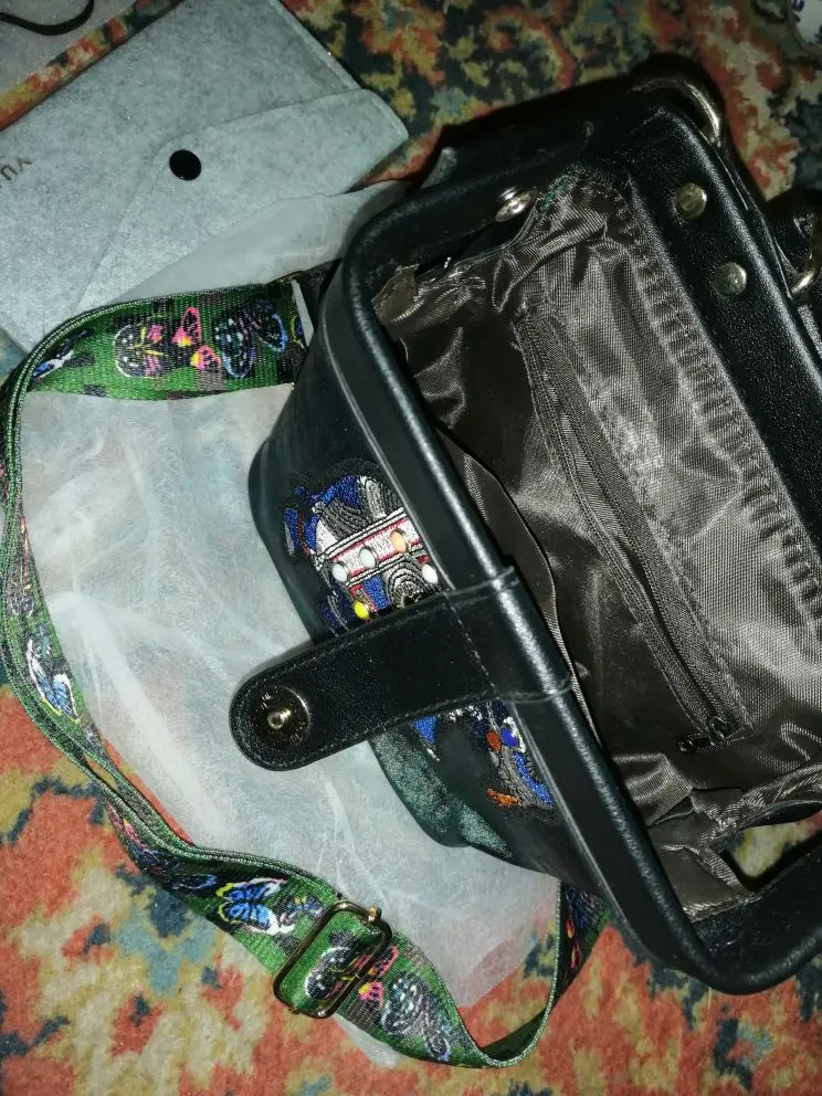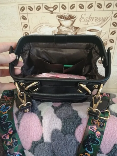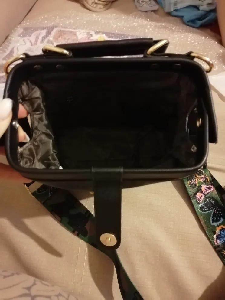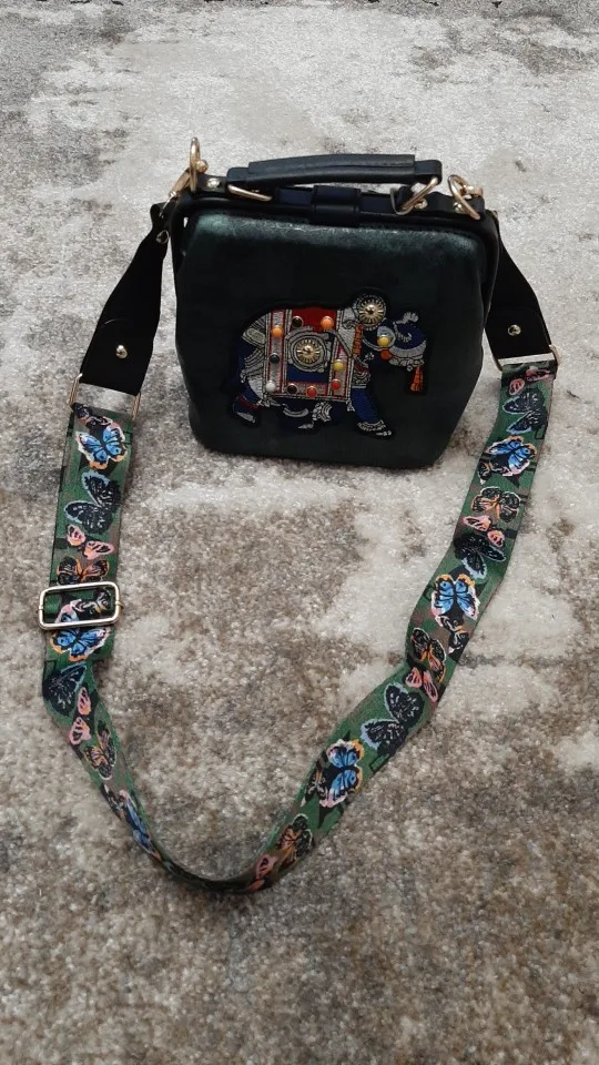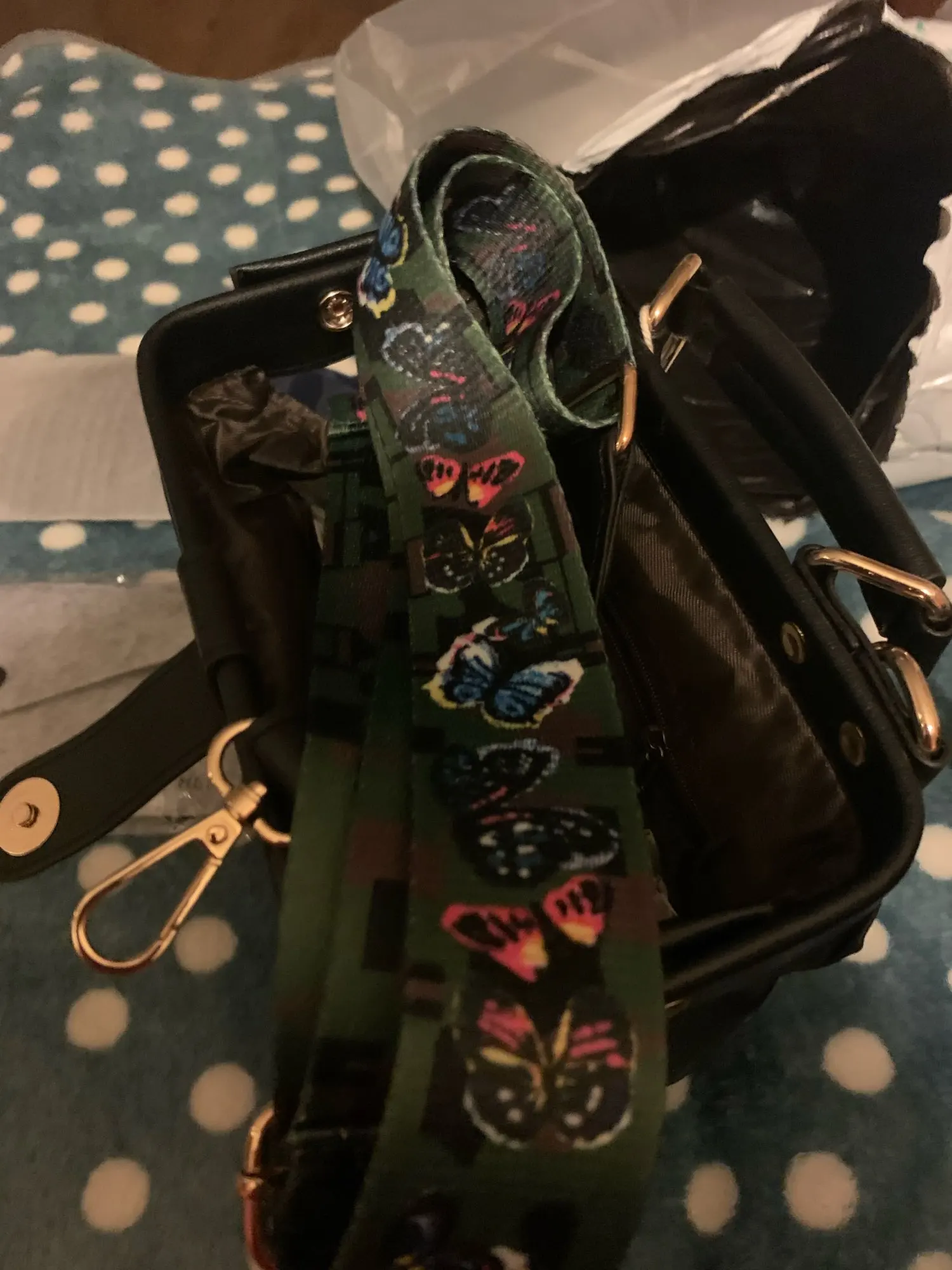 Ремешок не совместим с дизайном сумочки. Это был камуфляж с бабочками, я бы хотел однотонный черный или зеленый.