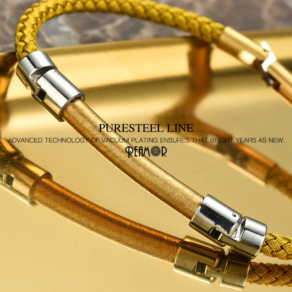 REAMOR Роскошная кисть стальной позолоченный ЧПУ структурные механические браслеты для мужчин и женщин уникальный браслет ювелирные изделия