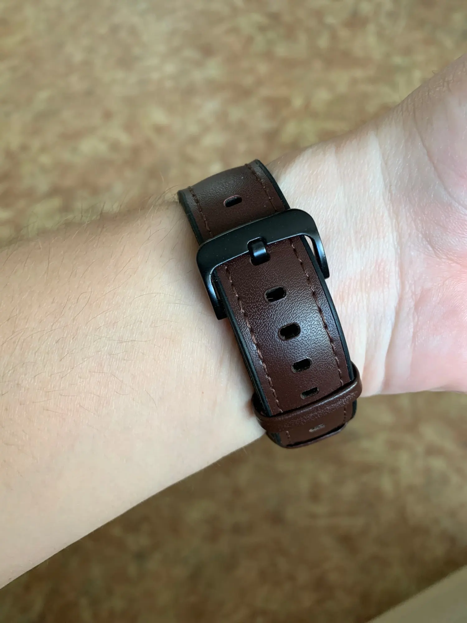 Доставка месяц. До этого покупал чёрный ремешок, на застежке достаточно быстро слезло покрытие, но и без него нормально смотрится. Сейчас заказал коричневый ремешок, выглядит красиво. Внутри прорезинен, за счёт чего рука не потеет, как в кожаном ремешке. Рекомендую к покупке.