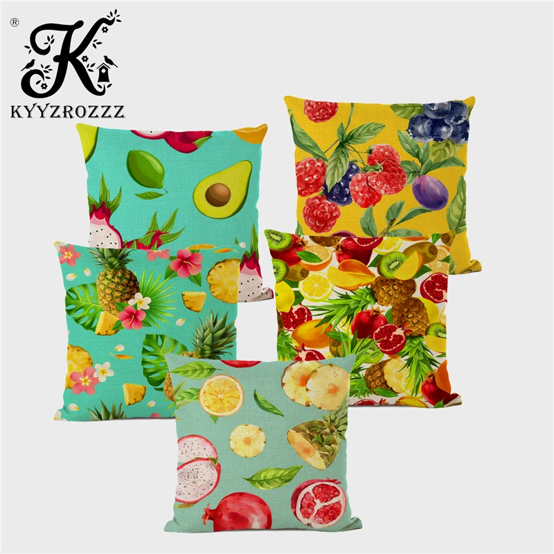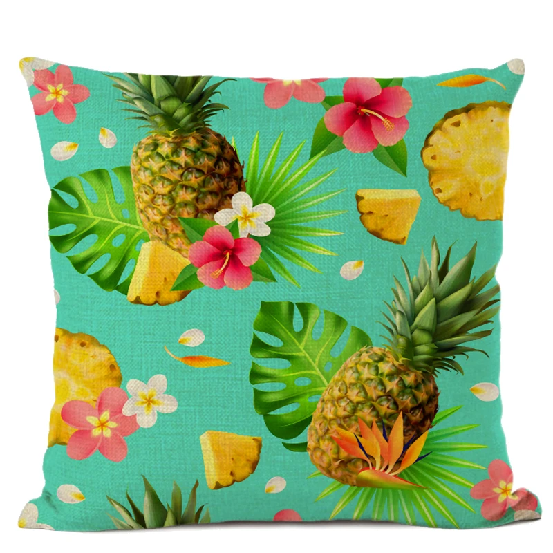 Наволочка с тропическим растением летняя фруктовая печать ананас оранжевый клубника льняная зеленая декоративная наволочка для подушки kissenbezug