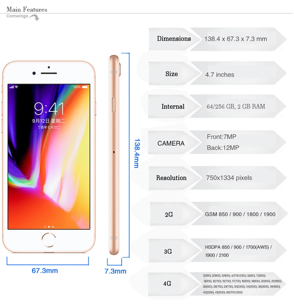 Оригинальный разблокированный смартфон Apple iPhone 8 1821, бу, мобильный телефон дюйма, 2 Гб ОЗУ, 4,7 МП, шестиядерный процессор, сканер отпечатка пальца, iOS, Apple NFC