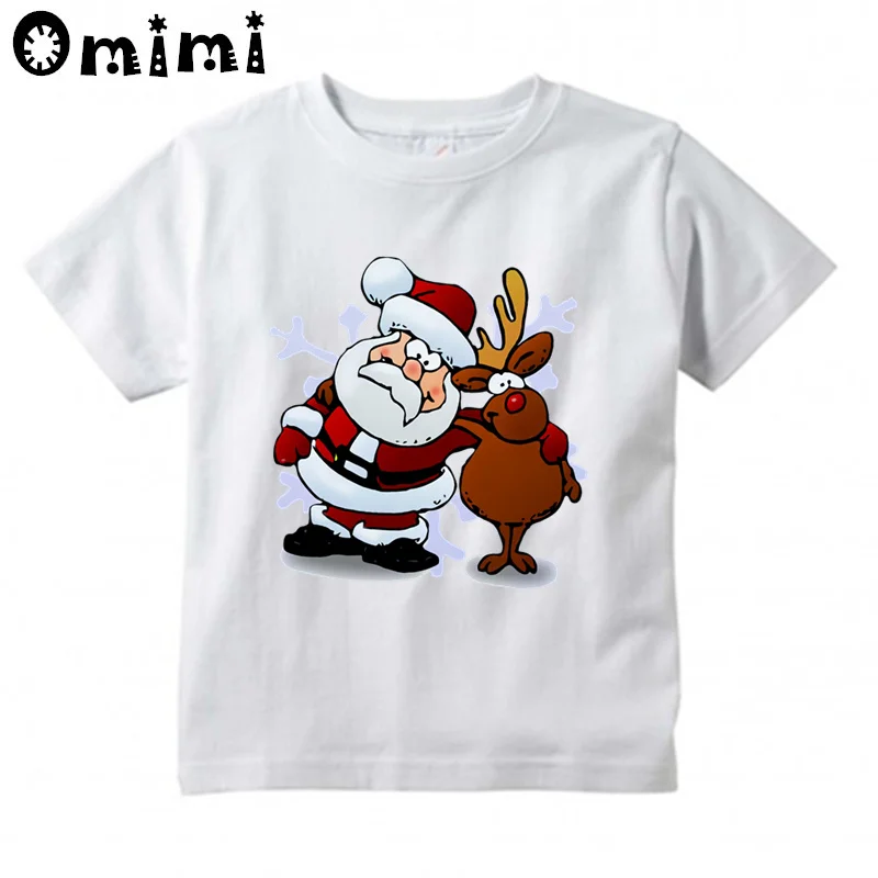 Забавная Рождественская футболка с Санта и олень для девочек и маль...