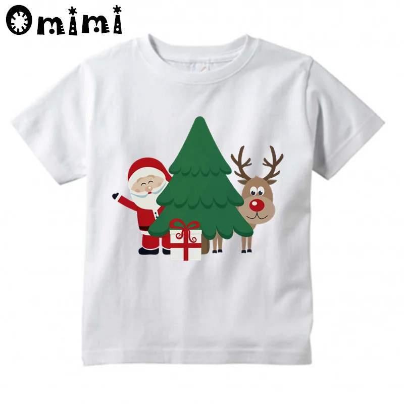 НОВАЯ РОЖДЕСТВЕНСКАЯ футболка с Санта-оленем, детская модная футболка с коротким рукавом, детская белая футболка, топы для девочек и мальчиков, одежда, BAL609