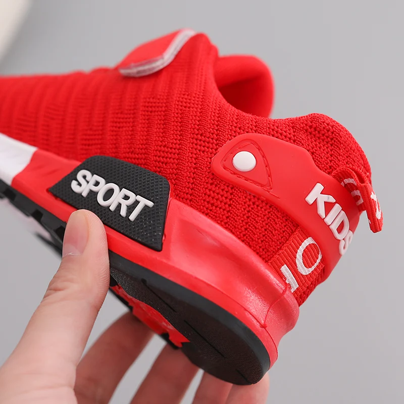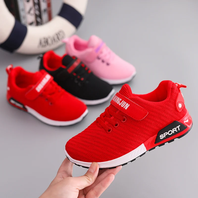 Детская спортивная обувь, осенние дышащие кроссовки с противоскользящей сеткой для мальчиков и девочек, черные, Красные кроссовки для младенцев