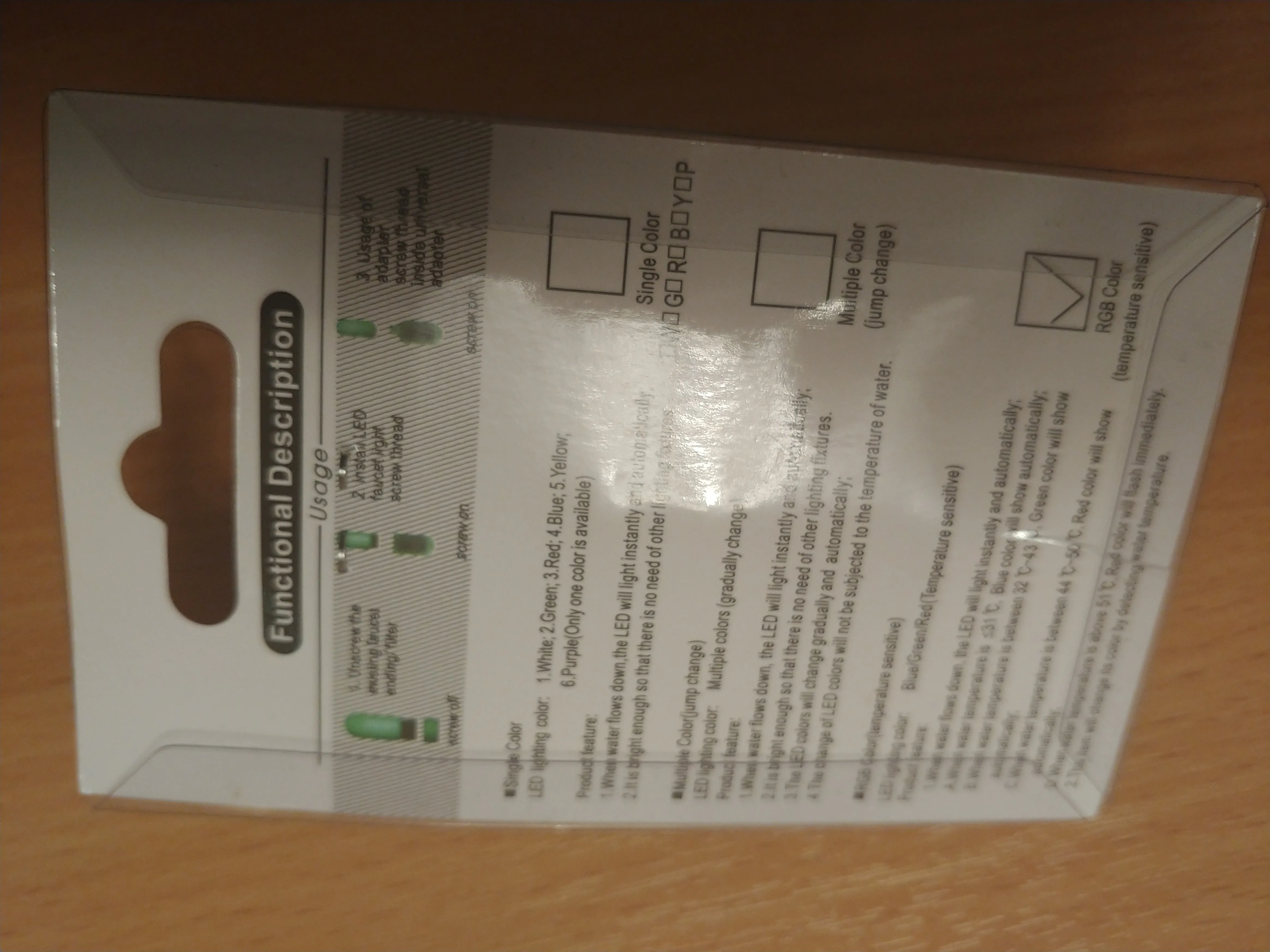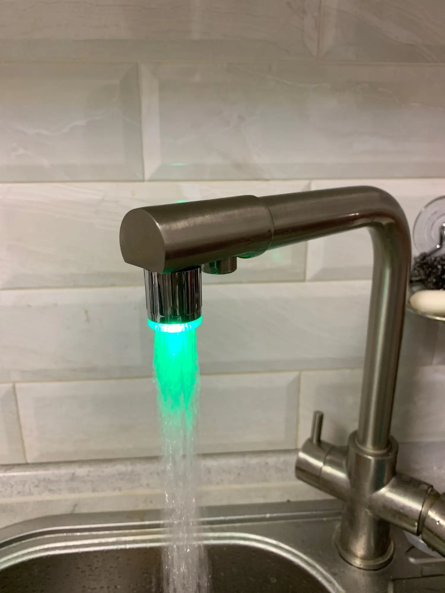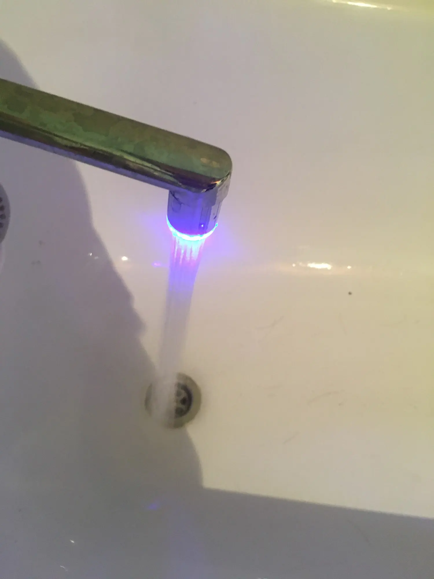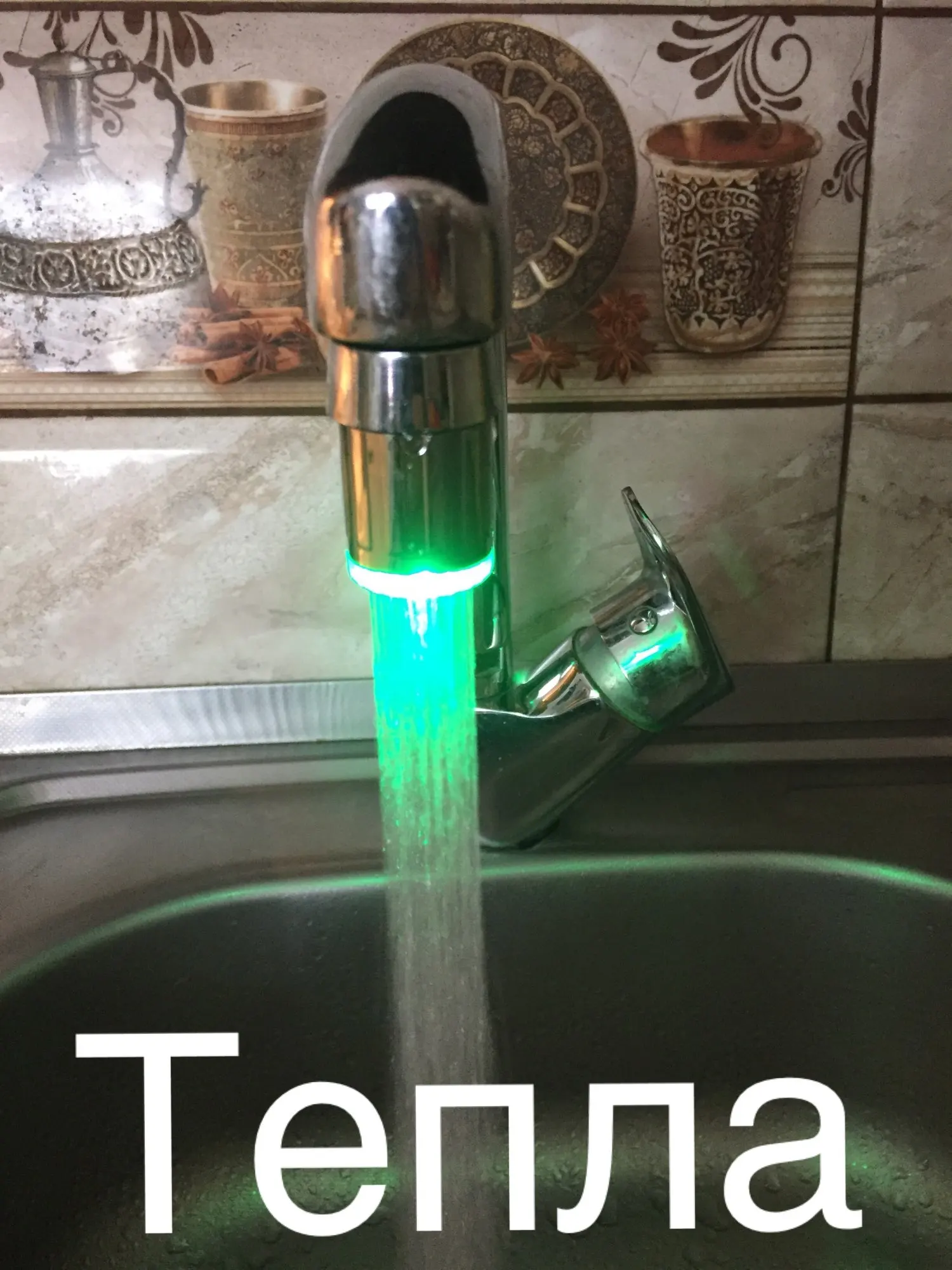 Уже не первый раз заказываю такие аэраторы воды. Эти с температурным сенсором. При горячей воде горят КРАСНЫМ, при холодной СИНИМ, при тёплой - ЗЕЛЕНЫМ цветом. Красота. Очень прикольно. Ночью можно не включать свет в ванной. Светильник, когда вода бежит. ))) Плюс экономит вашу коммуналку, так как это же аэратор. Про принцип работы можете прогуглить. Если хотите чтобы аэроторы долго жили нужно уменьшить напор воды подачи на установленный смеситель.
