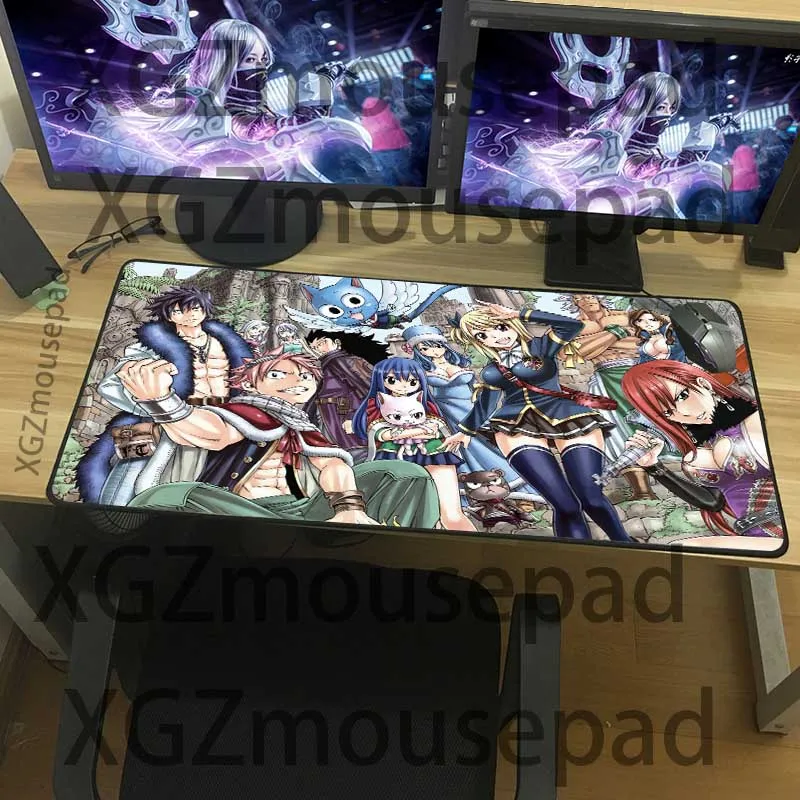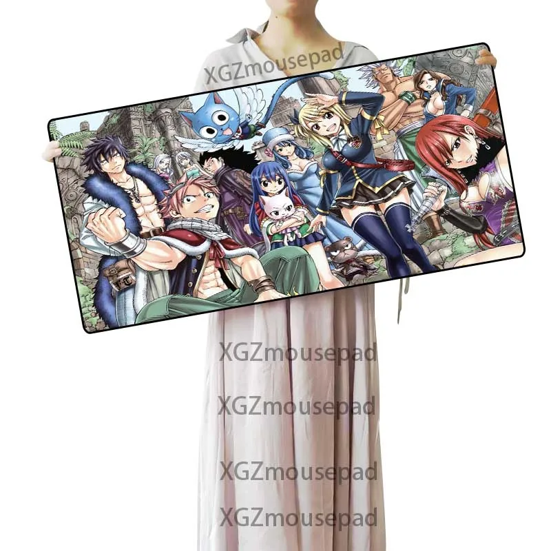 Большой коврик XGZ для компьютерной клавиатуры, черный коврик для мыши с застежкой по краям, сказочный хвост, сексуальная девушка, аниме, HD, пользовательский игровой коврик для мыши, резиновый, нескользящий, Xxl