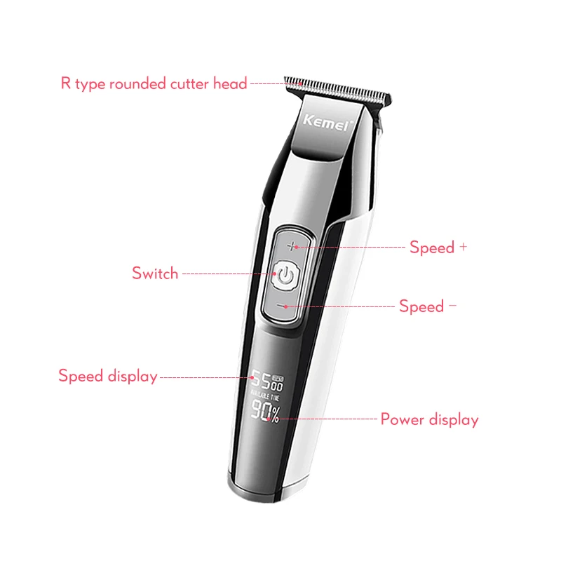 Kemei Беспроводная Машинка для стрижки волос Профессиональный электрический триммер ЖК-дисплей Baldhead Бритва для бороды для мужчин режущий станок 40D