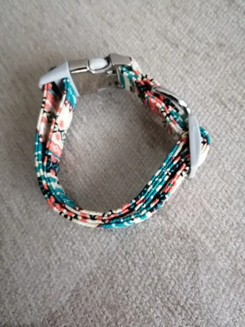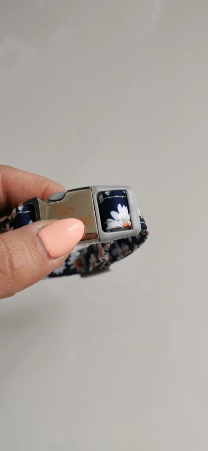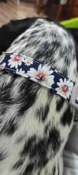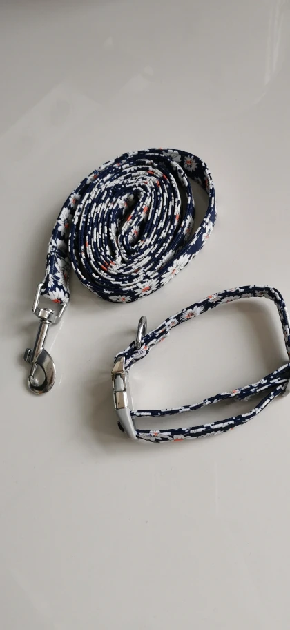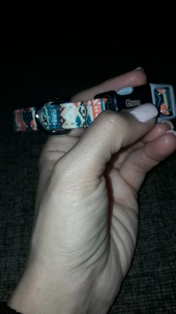 Гравюра красивая, и хотя ткань тоньше, чем я думал, она выглядит великолепно. Закрытие наполовину металлическое и наполовину пластиковое, но кажется довольно стойким. Ремешок довольно длинный, карабин может быть лучше, для собак, которые ничего не тянут в прогулку, не было бы никаких забот.