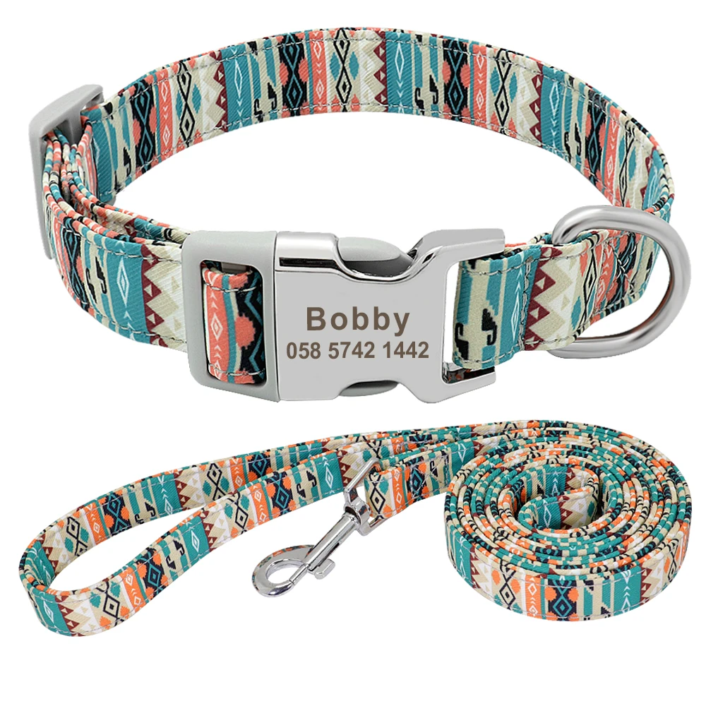 Собачий ошейник, персонализированный нейлоновый собачий ошейник, свинцовый именной идентификатор для маленьких, средних и крупных собак, Питбуль бульдог Бигль