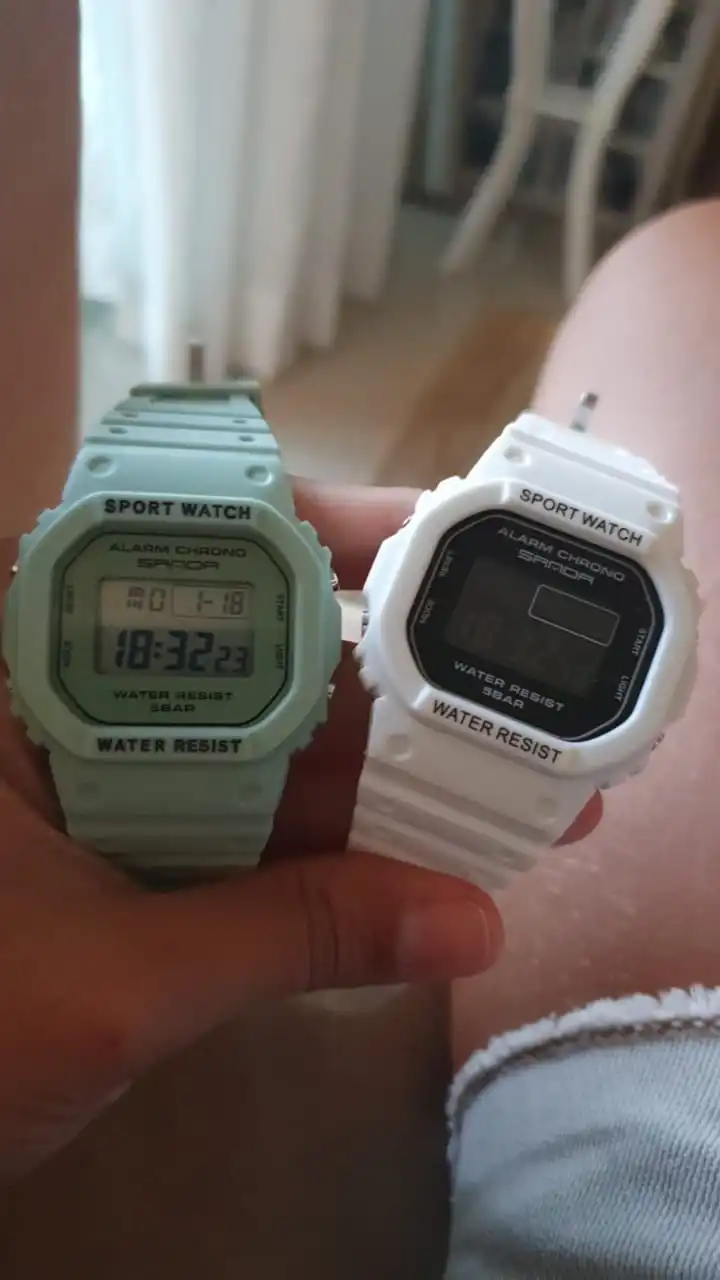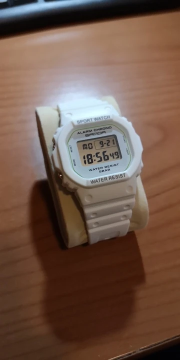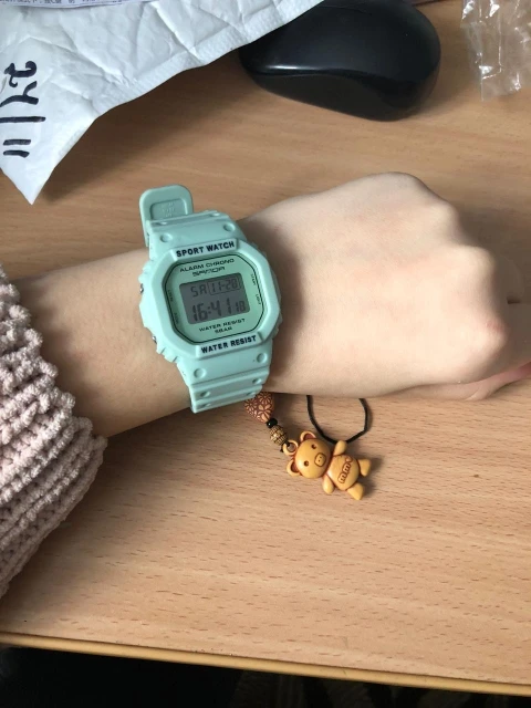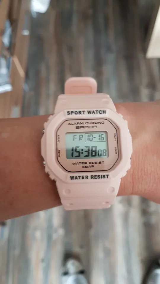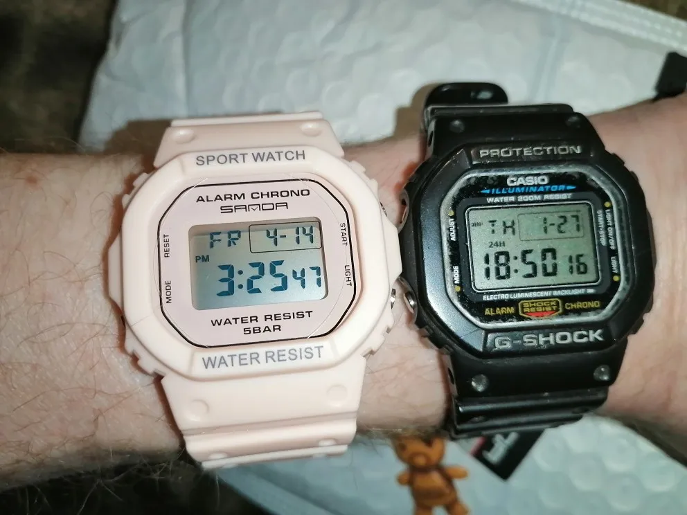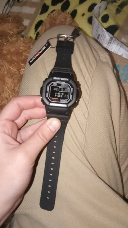 Очень быстрая доставка. В подарок продавец положил подвеску-брелок: ненужно, но мило. Часы напоминают известную модель касьо, у меня были похожие от другого китайского бренда, прослужили очень долго, пока не лопнул ремешок, который не получилось заменить. Этим немного массивней, экранчик немного меньше, ремешок тугой. Рамка над стеклом выступает сильней, понравилось - защитит стекло от случайных ударов при занятии спортом, плавании и т.п. Коробки не было, завернуто в пупырку и упаковано в пупырчатый пакет. Инструкция на китайском и на английском, но в общем там и без инструкции все понятно. Посмотрим, сколько они протянут, а пока спасибо продавцу. Батарейка CR2016