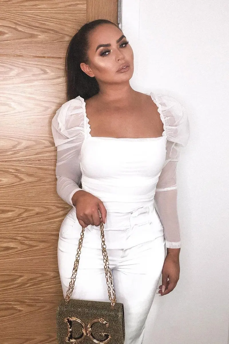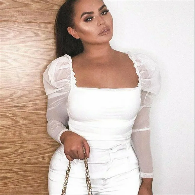 Женский сексуальный сетчатый боди с пышными рукавами, блузка с рюшами